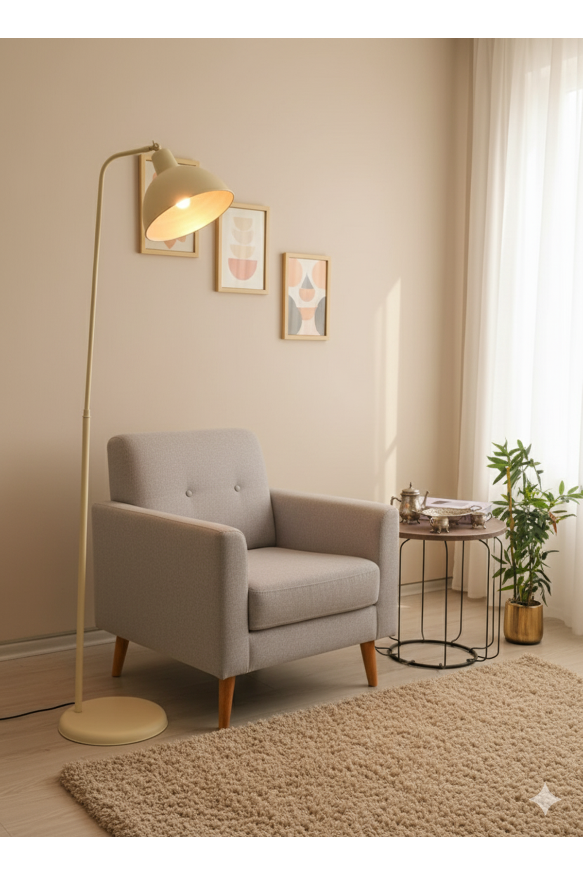 Bu modern lambaderi koltuk kenarına ya da okuma köşenize yerleştirerek ortamda sıcak bir atmosfer oluşturabilirsiniz. Metal gövdesiyle dekorasyona zarif bir renk dokunuşu yapan lambader, mekanınıza stil ve enerji katar.