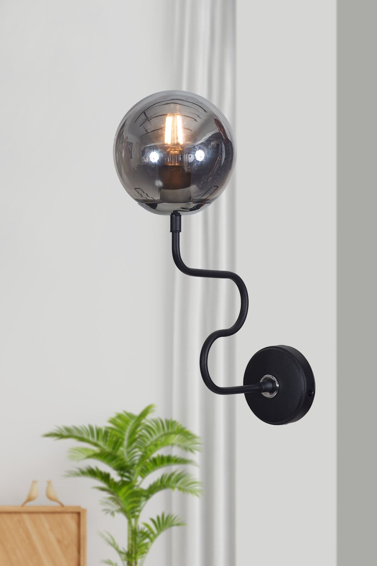 Ferro Yatay Krom-Siyah Metal Gövde Füme Camlı Tasarım Lüx Aplik