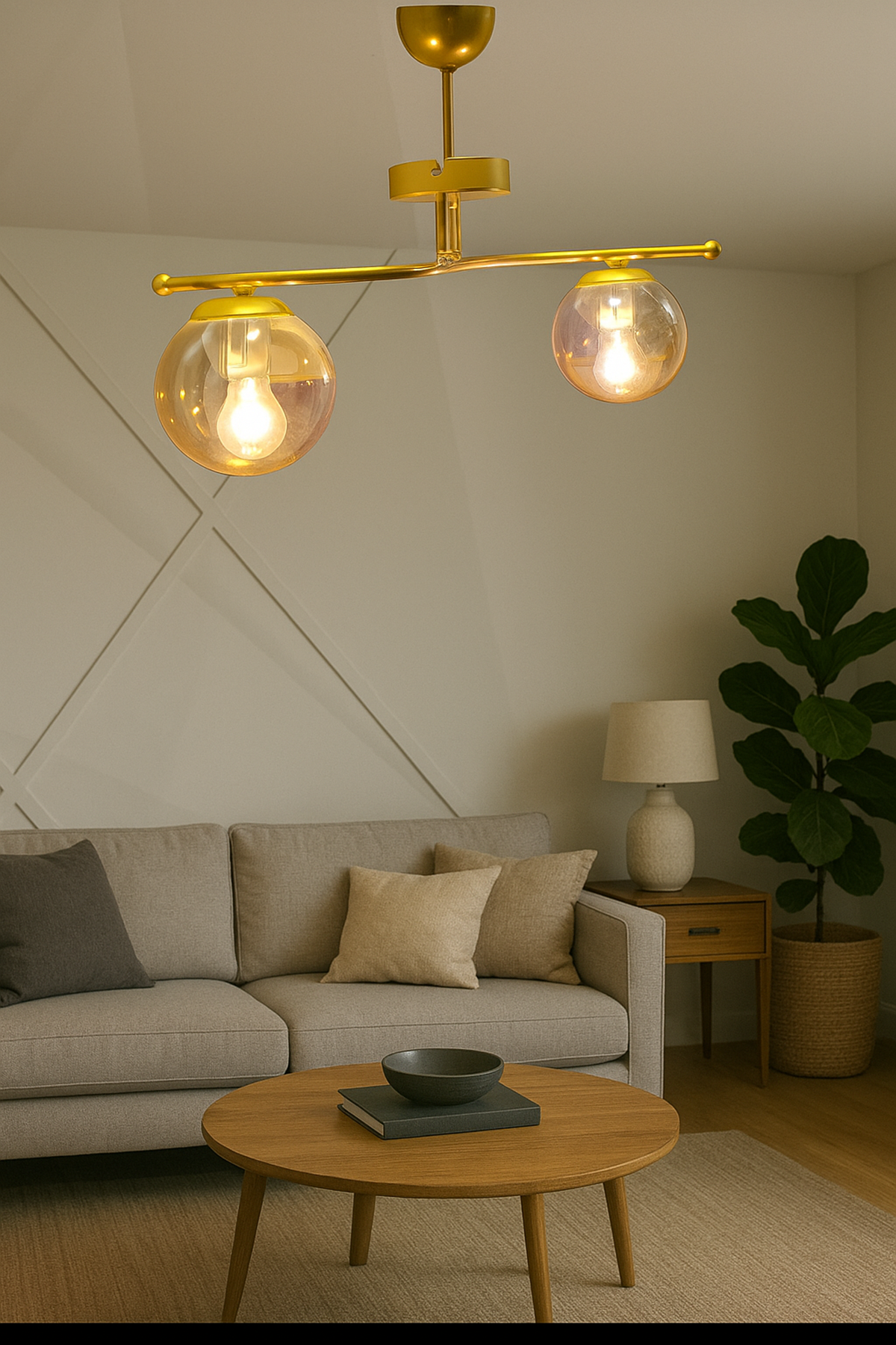 🌟 Galaksi Modern Tasarım Sarı 2'li Bal Camlı Metal Gövde Avize | Salon, Yatak Odası ve Mutfak İçin