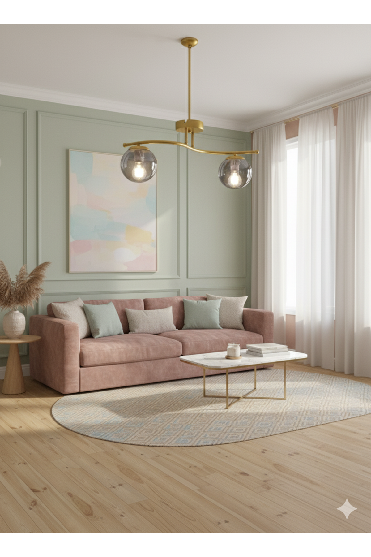 🌟 Galaksi Modern Tasarım Sarı 2'li Füme Camlı Metal Gövde Avize | Salon, Yatak Odası ve Mutfak İçin