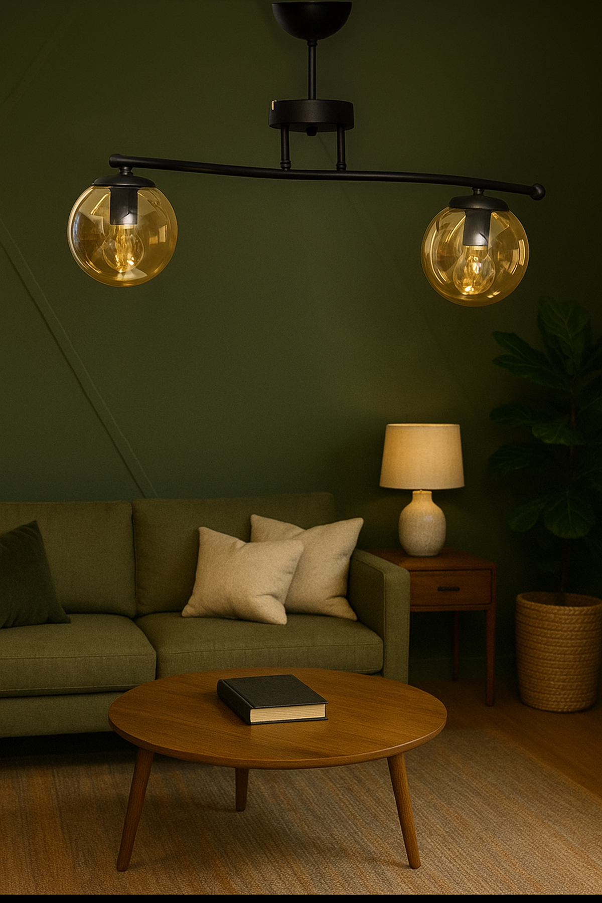 🌟 Galaksi Modern Tasarım Siyah 2'li Bal Camlı Metal Gövde Avize | Salon, Yatak Odası ve Mutfak İçin