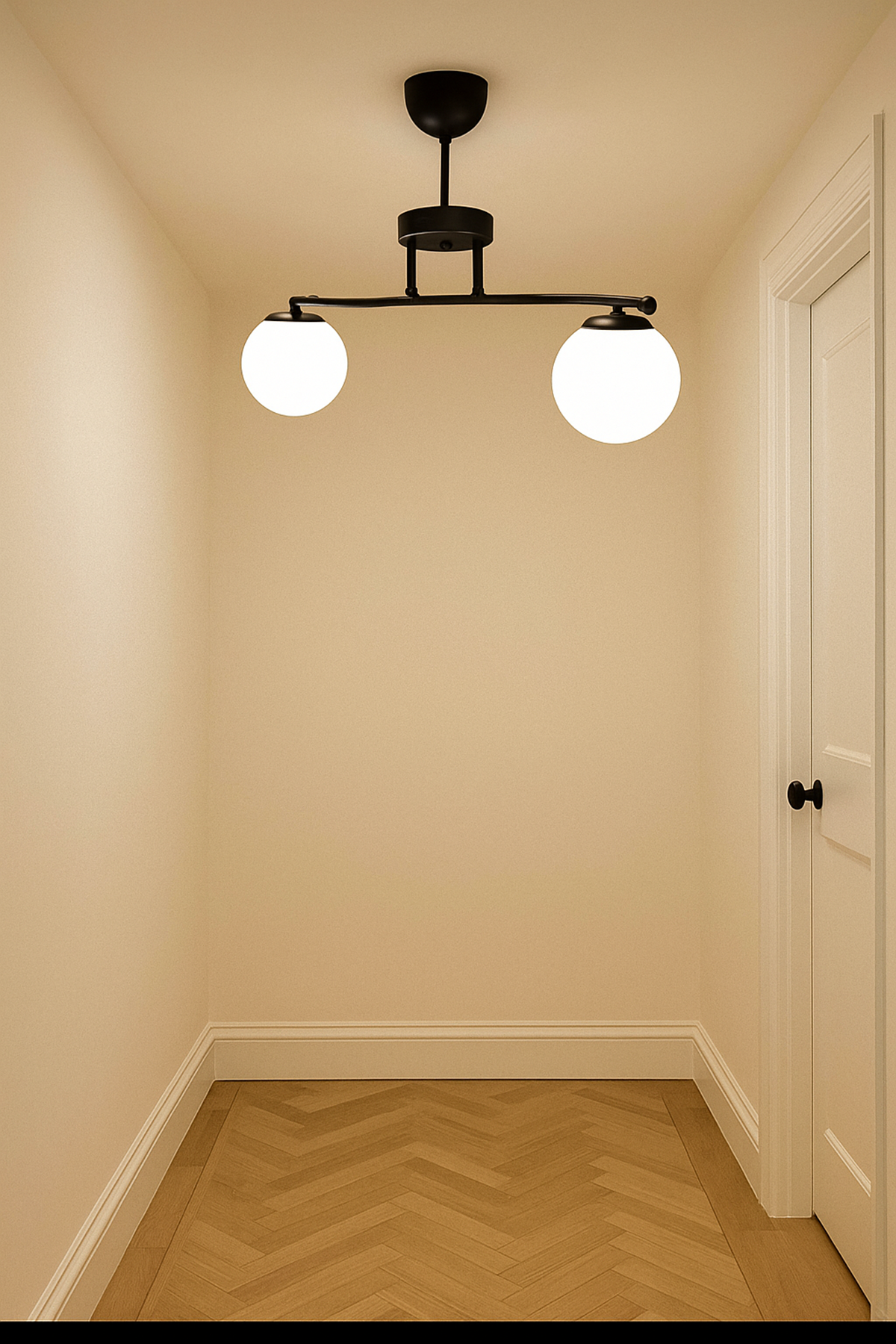 🌟 Galaksi Modern Tasarım Siyah 2'li Beyaz Camlı Metal Gövde Avize | Salon, Yatak Odası ve Mutfak İçin