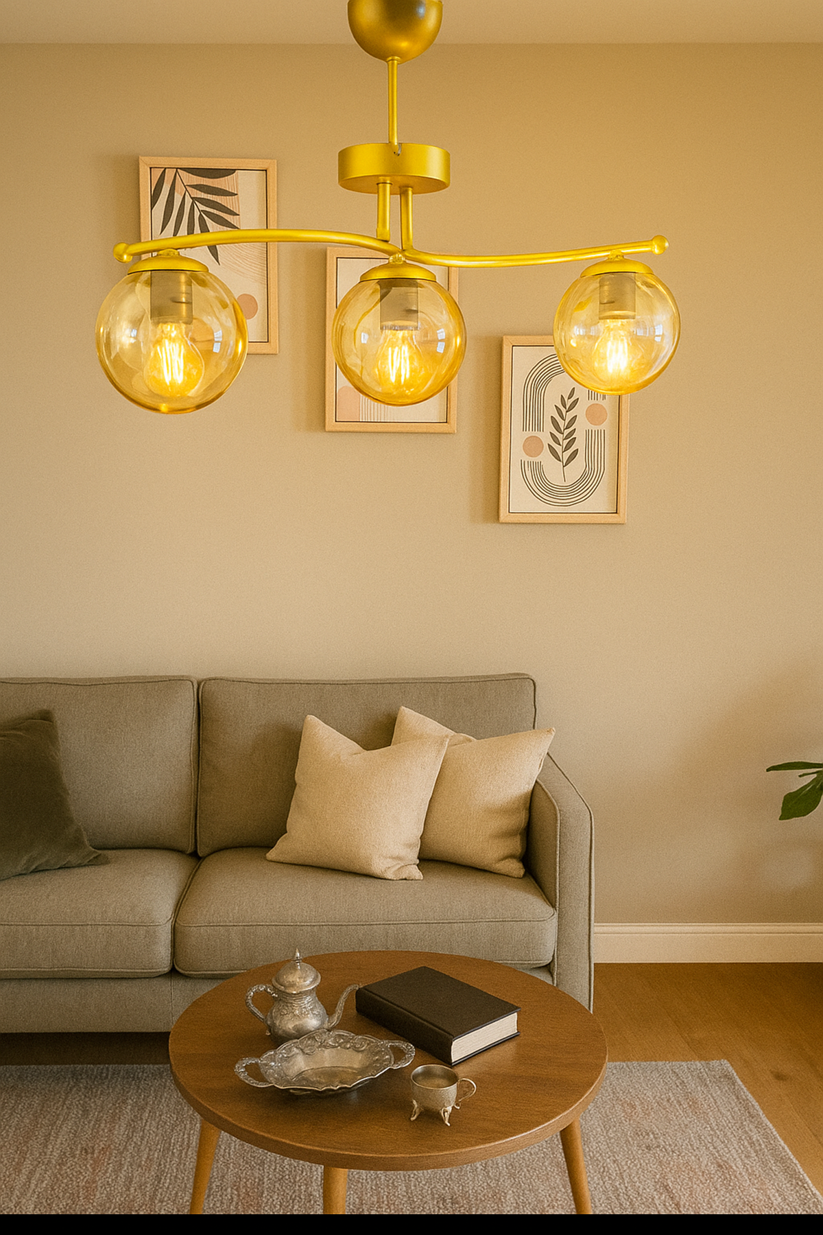 Galaksi Modern Tasarım Sarı 3'li Bal Camlı Metal Gövde Avize | Salon, Yatak Odası ve Mutfak İçin