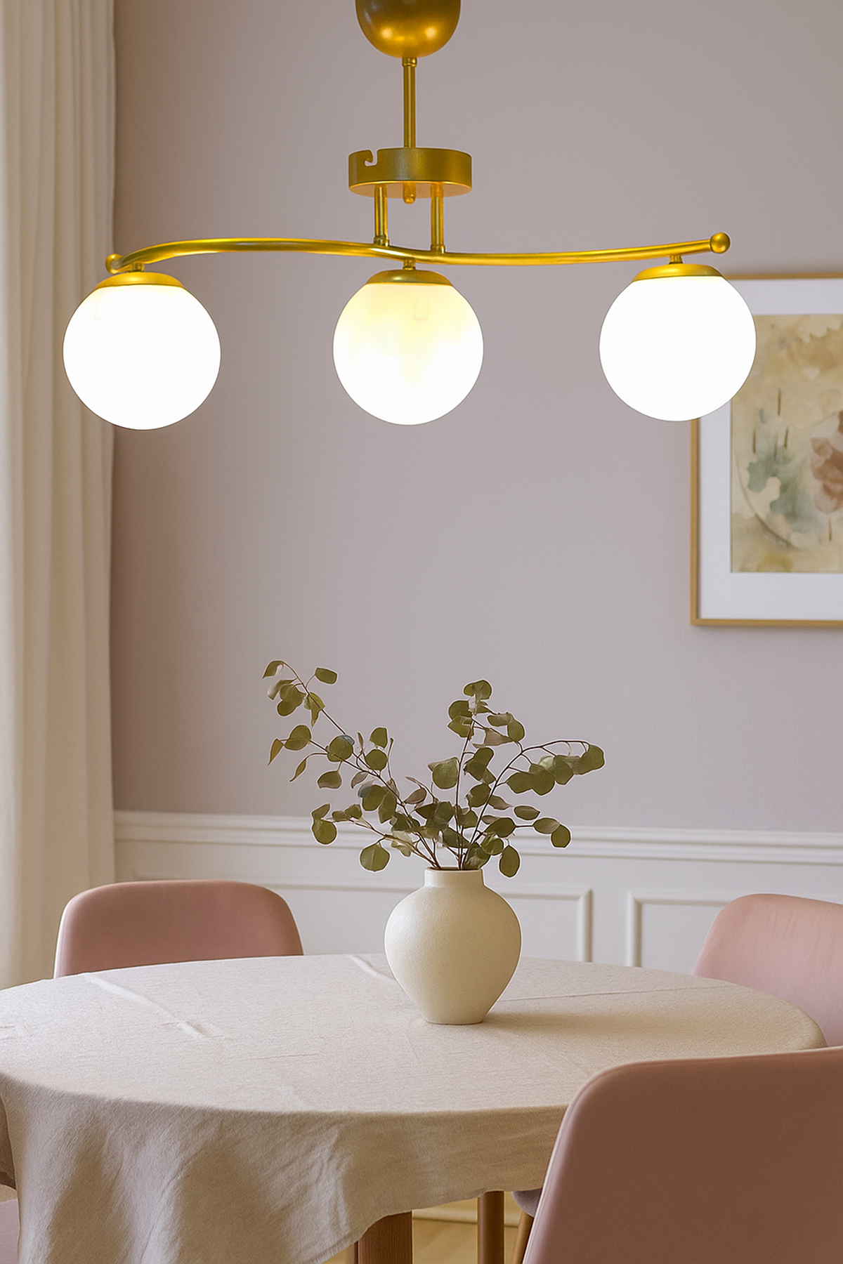 🌟 Galaksi Modern Tasarım Sarı 3'lü Beyaz Camlı Metal Gövde Avize | Salon, Yatak Odası ve Mutfak İçin