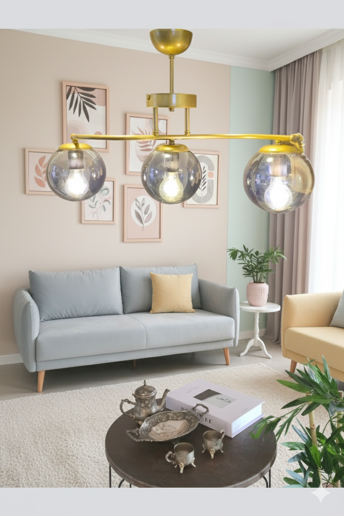 🌟 Galaksi Modern Tasarım Sarı 3'lü Füme Camlı Metal Gövde Avize | Salon, Yatak Odası ve Mutfak İçin