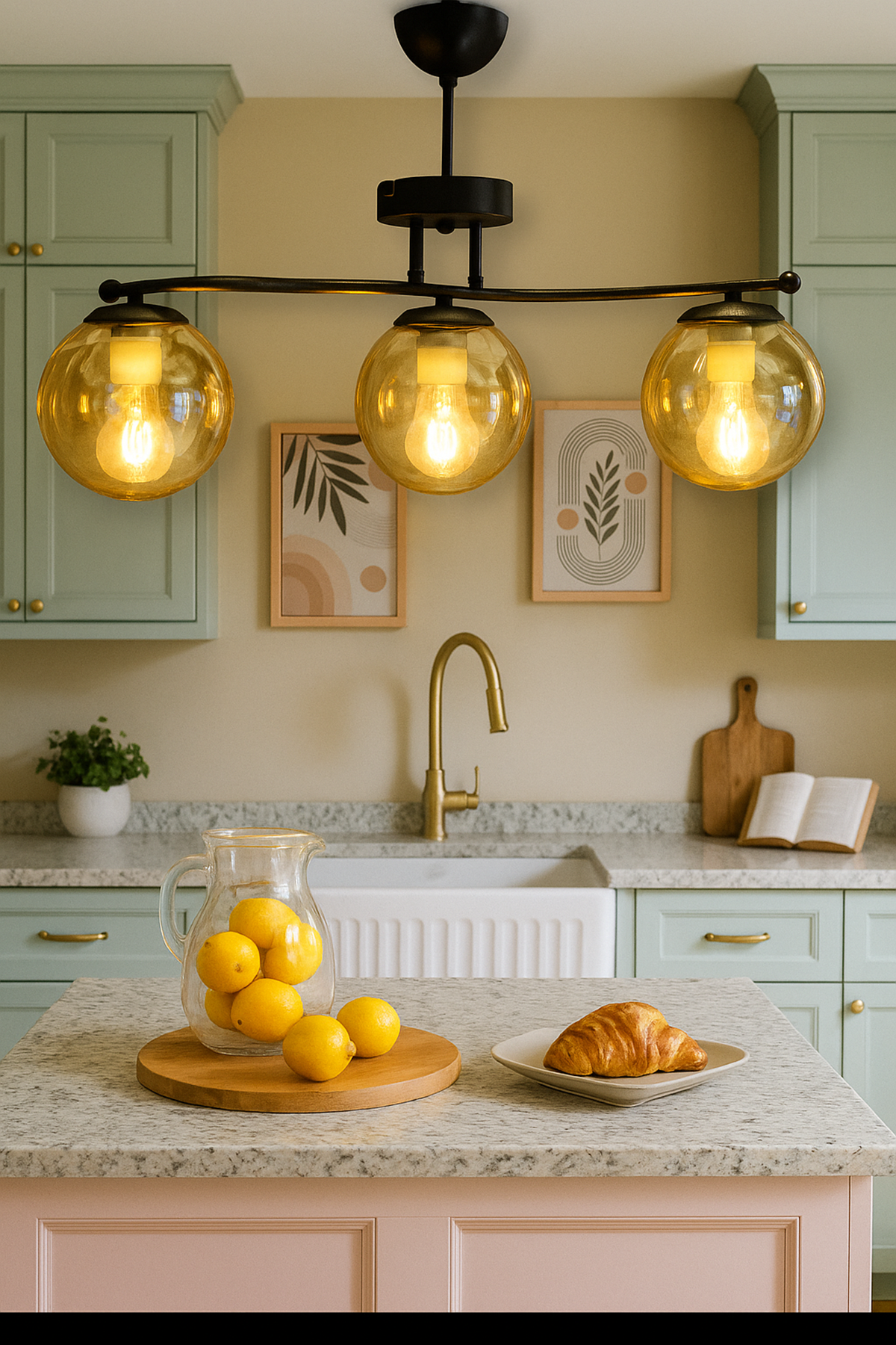 🌟 Galaksi Modern Tasarım Siyah 3'lü Bal Camlı Metal Gövde Avize | Salon, Yatak Odası ve Mutfak İçin