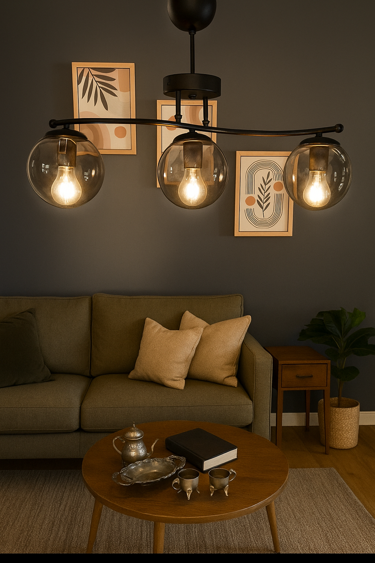 🌟 Galaksi Modern Tasarım Siyah 3'lü Füme Camlı Metal Gövde Avize | Salon, Yatak Odası ve Mutfak İçin