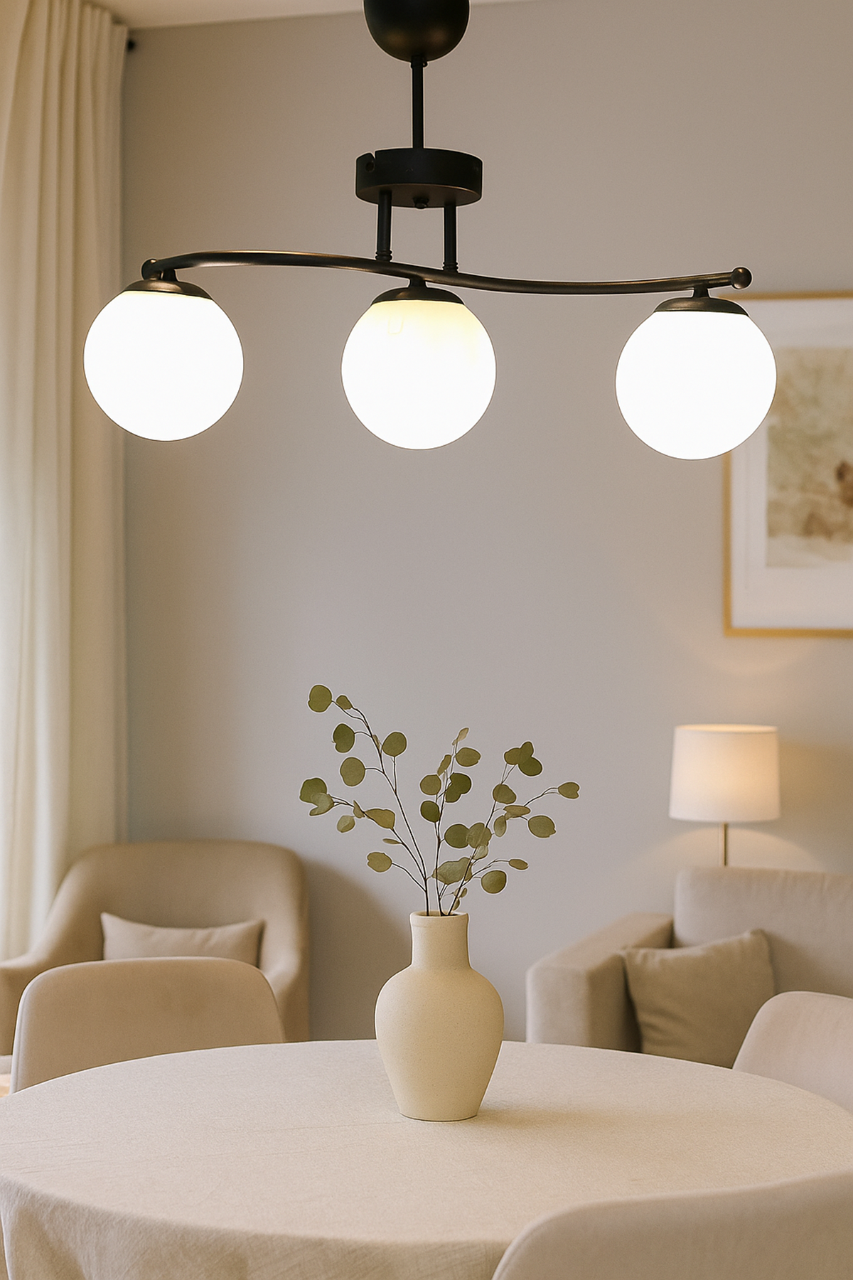 🌟 Galaksi Modern Tasarım Siyah 3'lü Beyaz Camlı Metal Gövde Avize | Salon, Yatak Odası ve Mutfak İçin