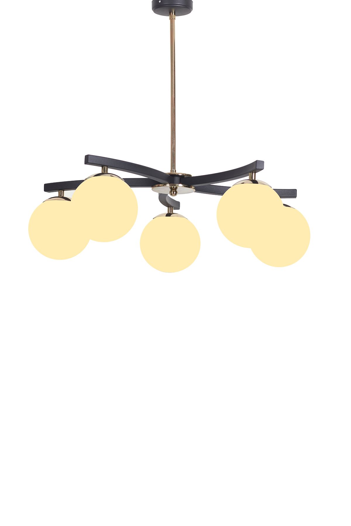 Lara 5 Li Gold-Siyah Metal Gövde Beyaz Rengi Camlı Tasarım Lüx Avize