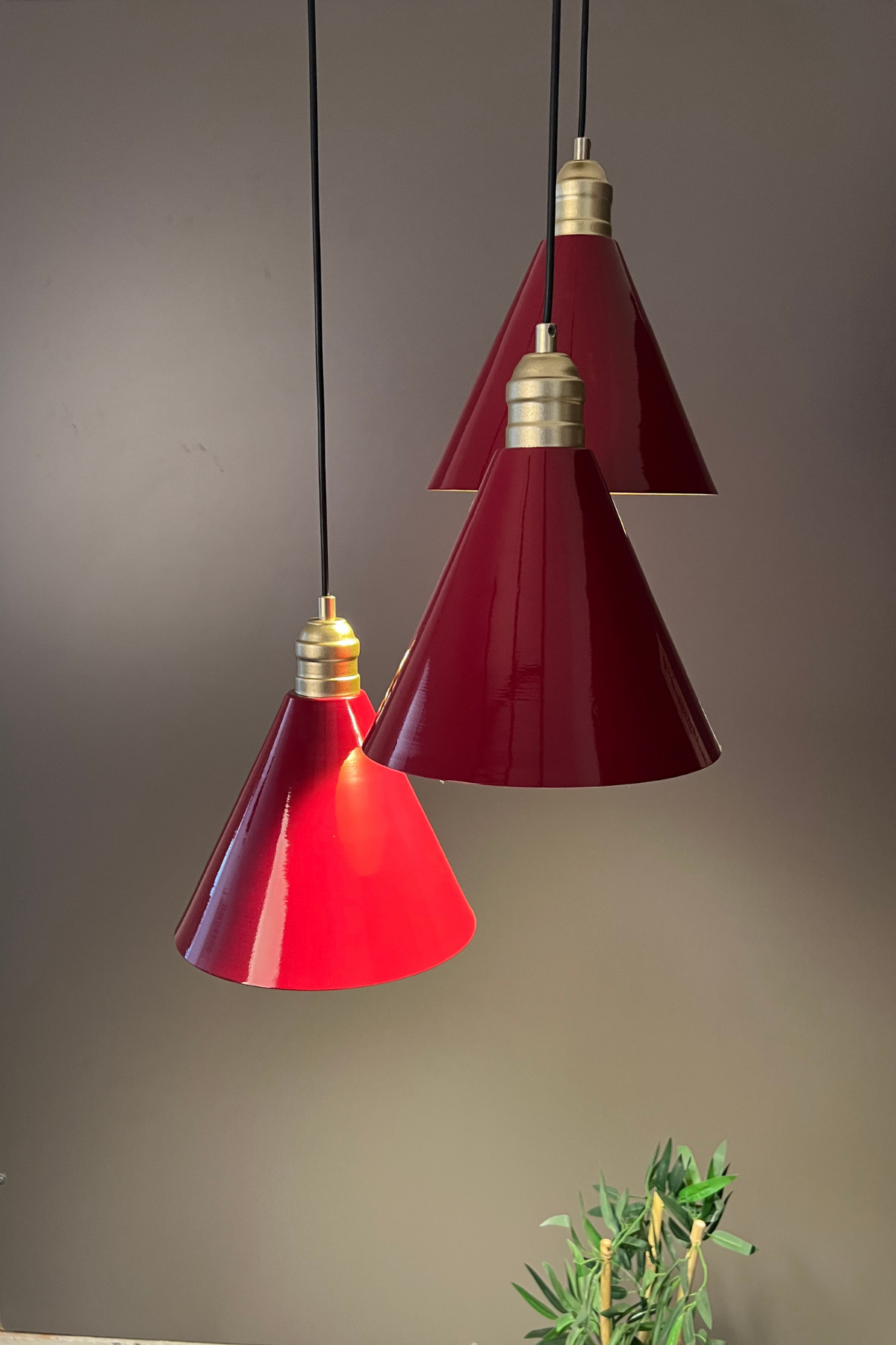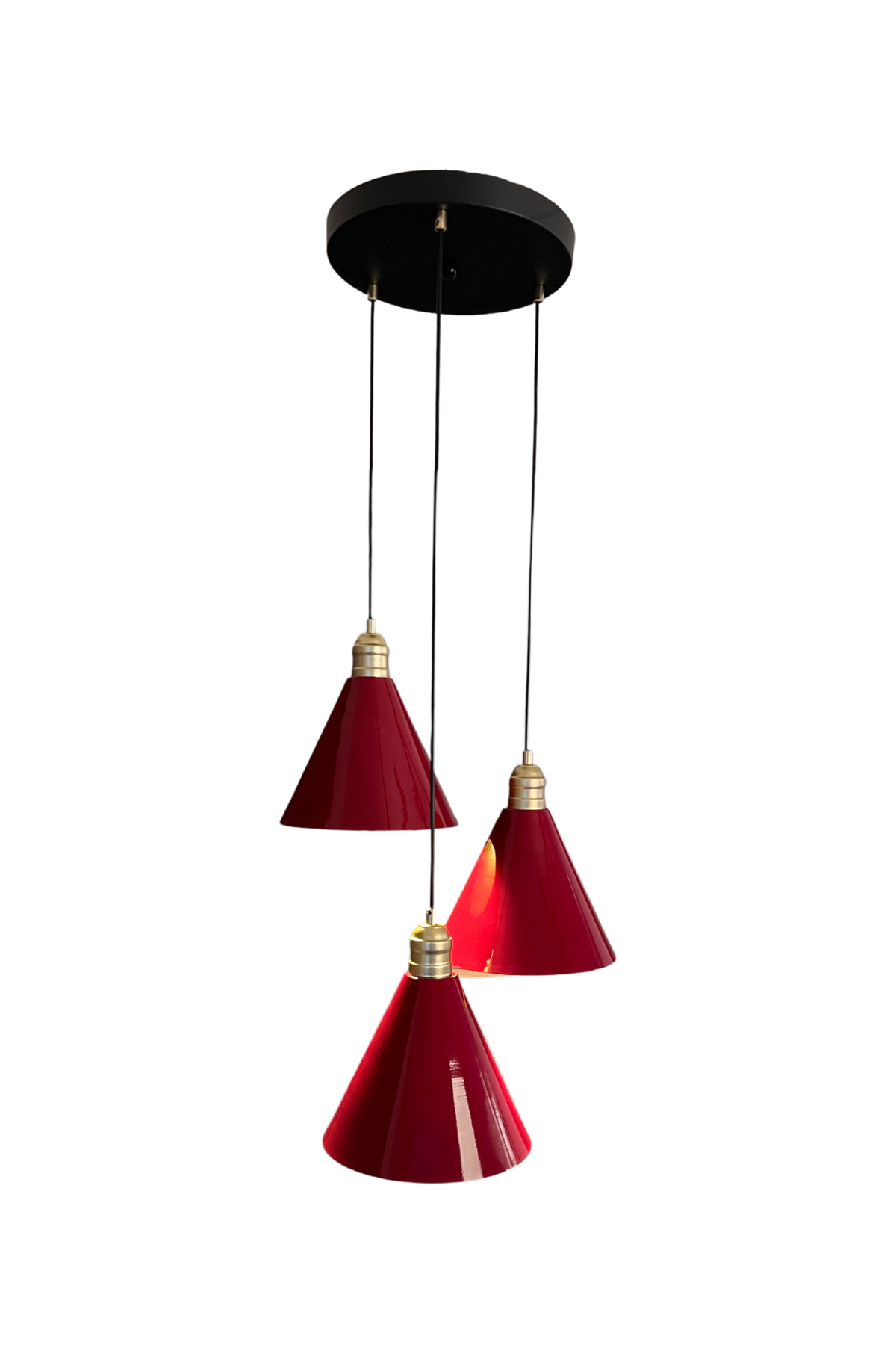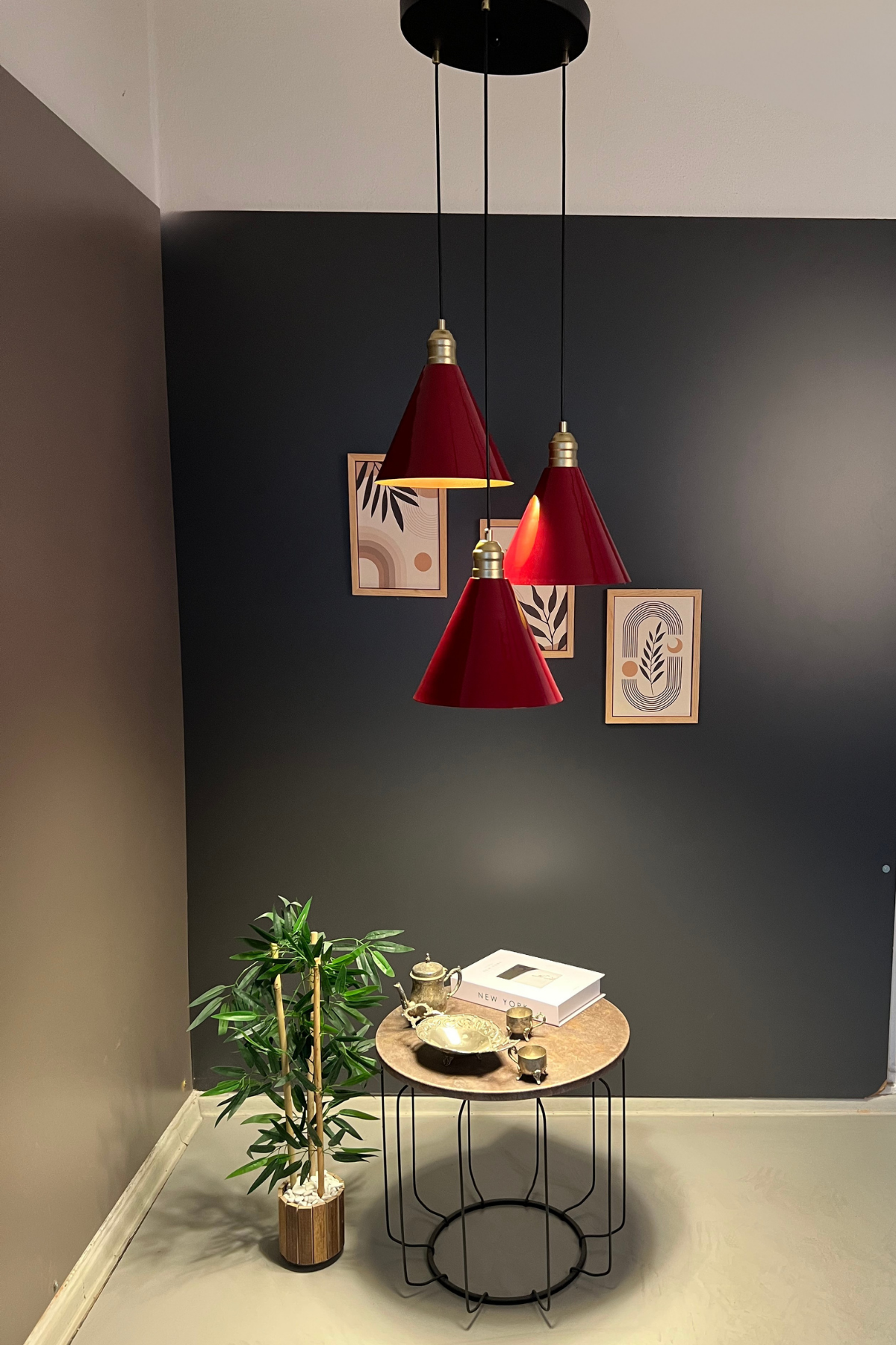 Luzarana Kuki 3 Lü Metal Gövde Bordo Renkli Avize Sarkıt Salon Mutfak Ofis Cafe Butik Avize