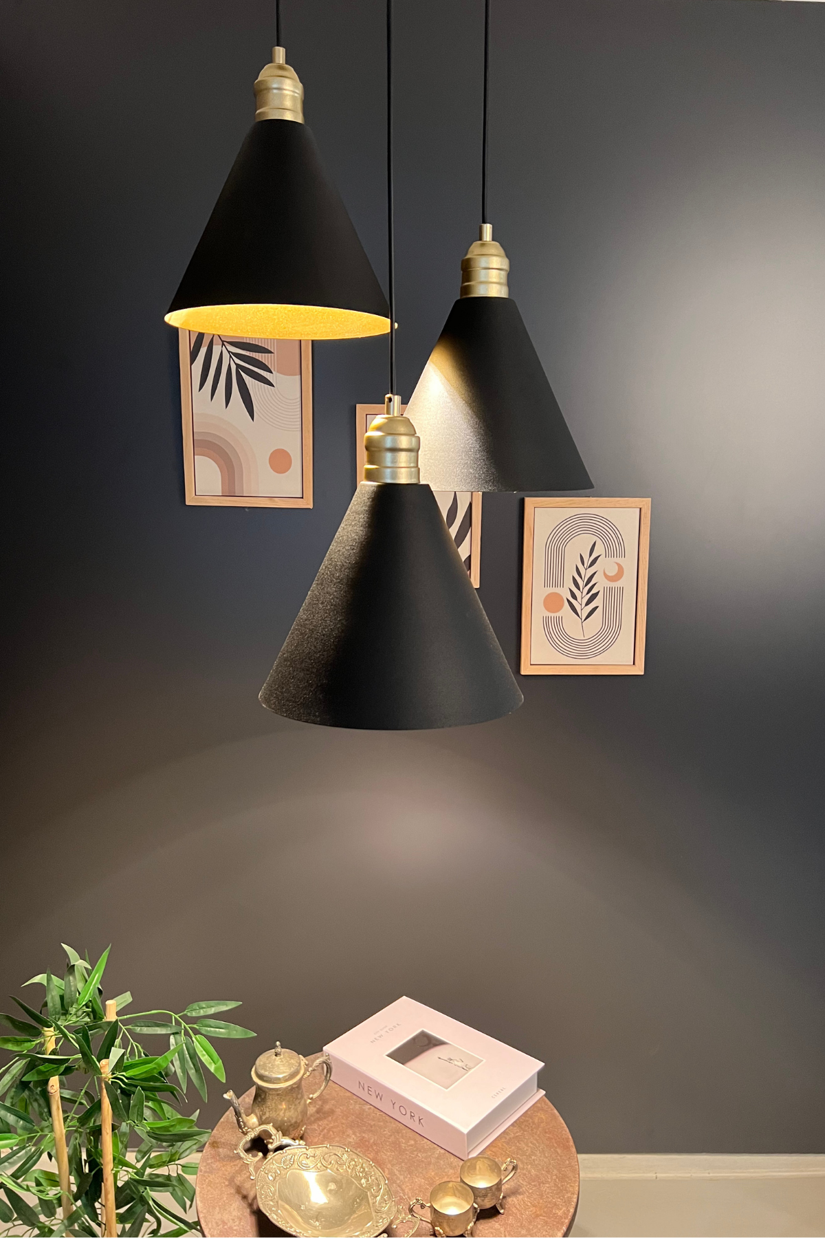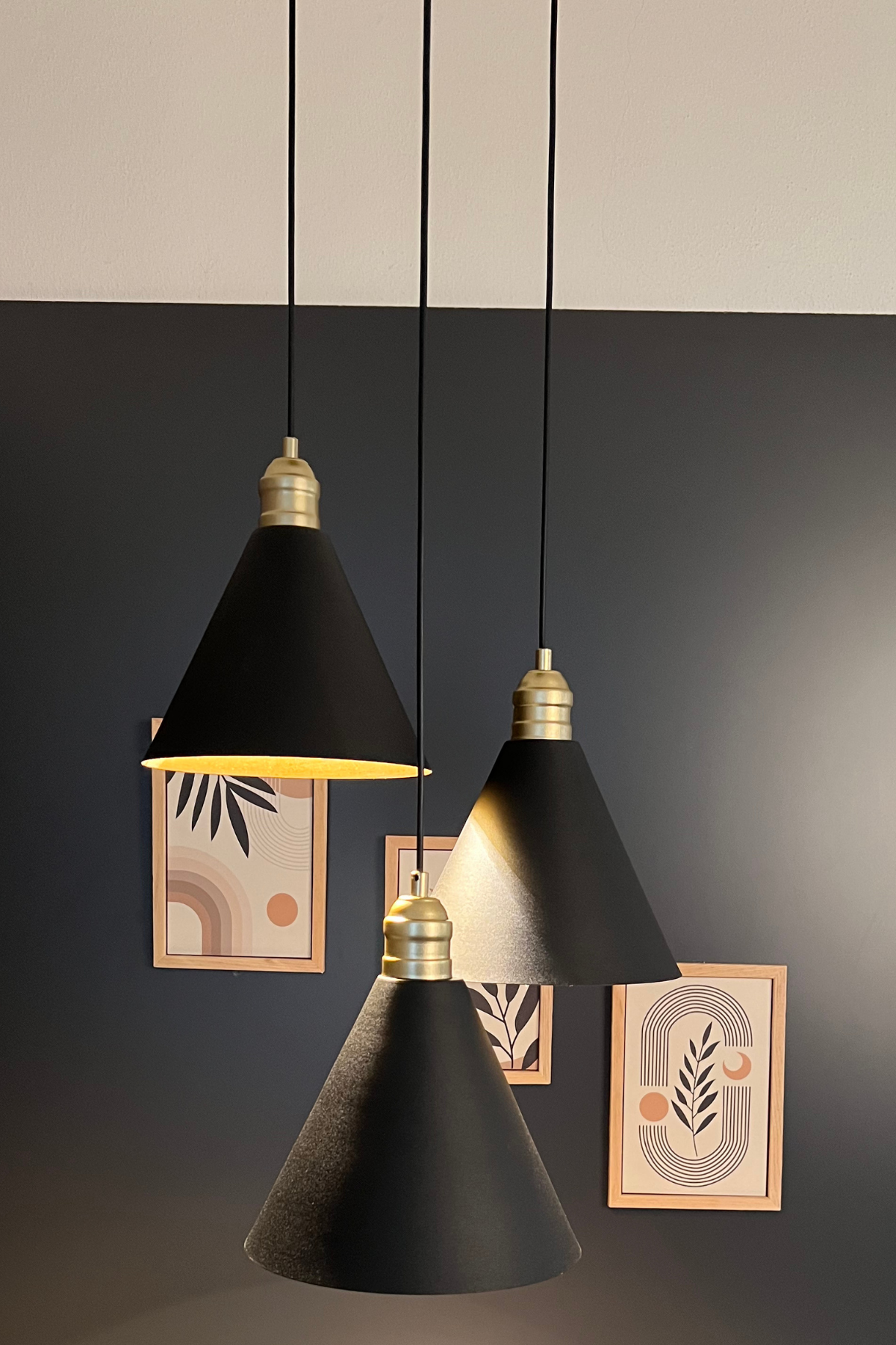 Luzarana Kuki 3 Lü Metal Gövde Siyah Renkli Avize Sarkıt Salon Mutfak Ofis Cafe Butik Lamba Aydınlatma Avizeler
