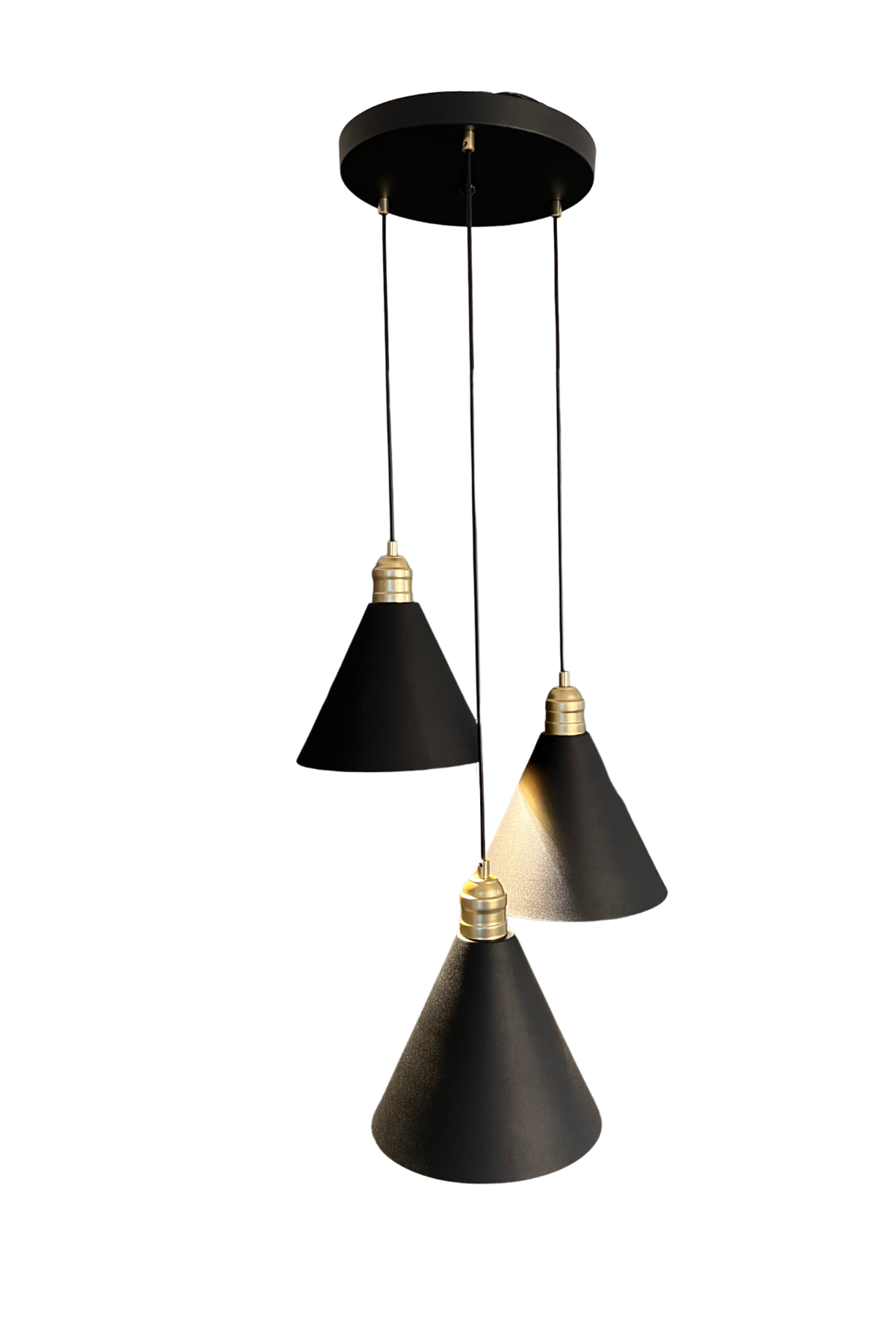 Kuki 3 Lü Metal Gövde Siyah Renkli Avize Sarkıt Avize