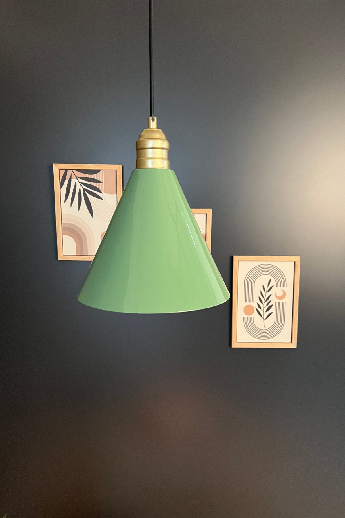 Luzarana Kuki Metal Gövde Yeşil Renkli Tekli Avize Sarkıt Salon Mutfak Ofis Cafe Butik Avize