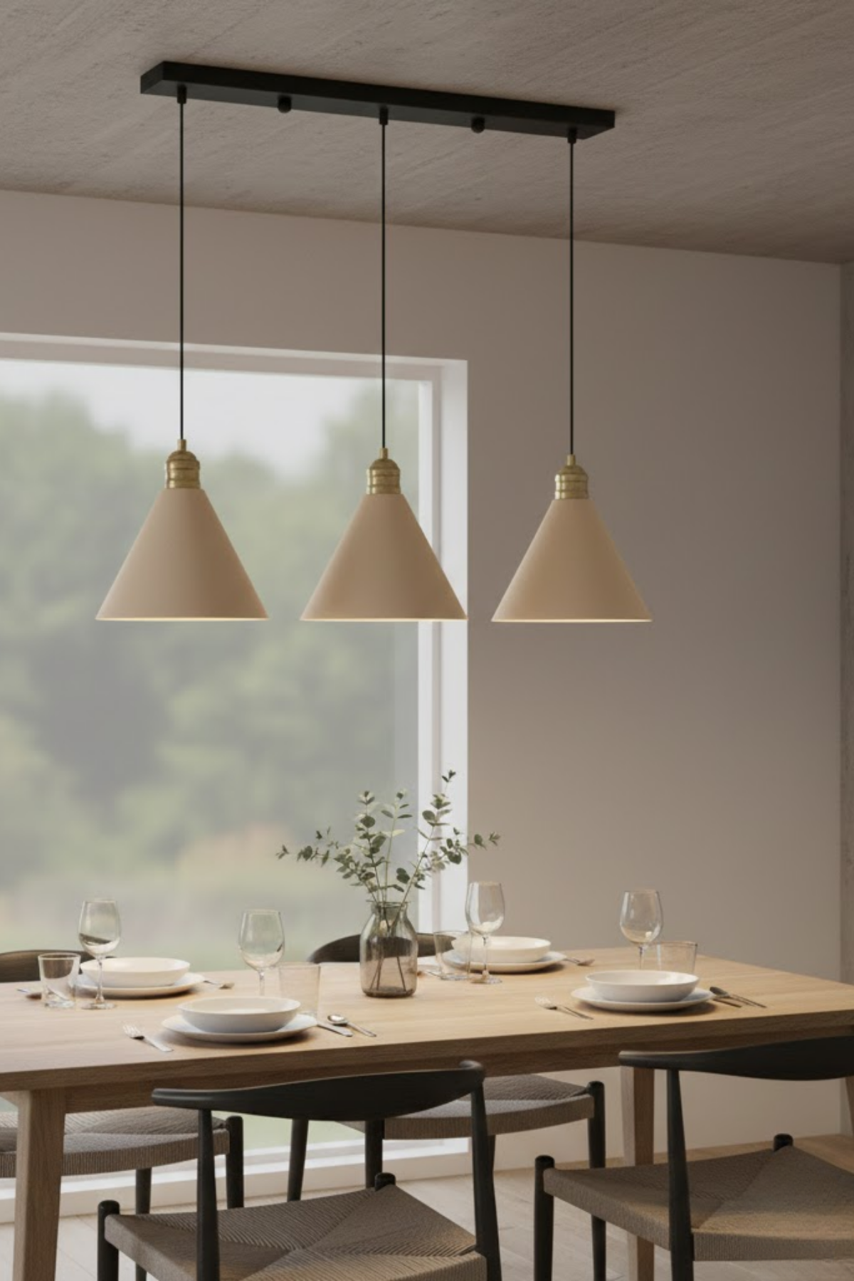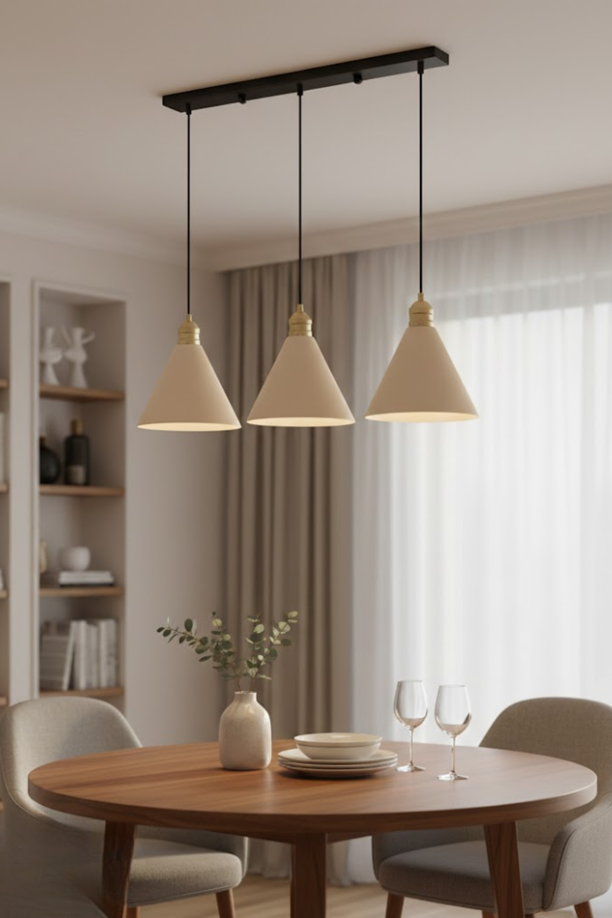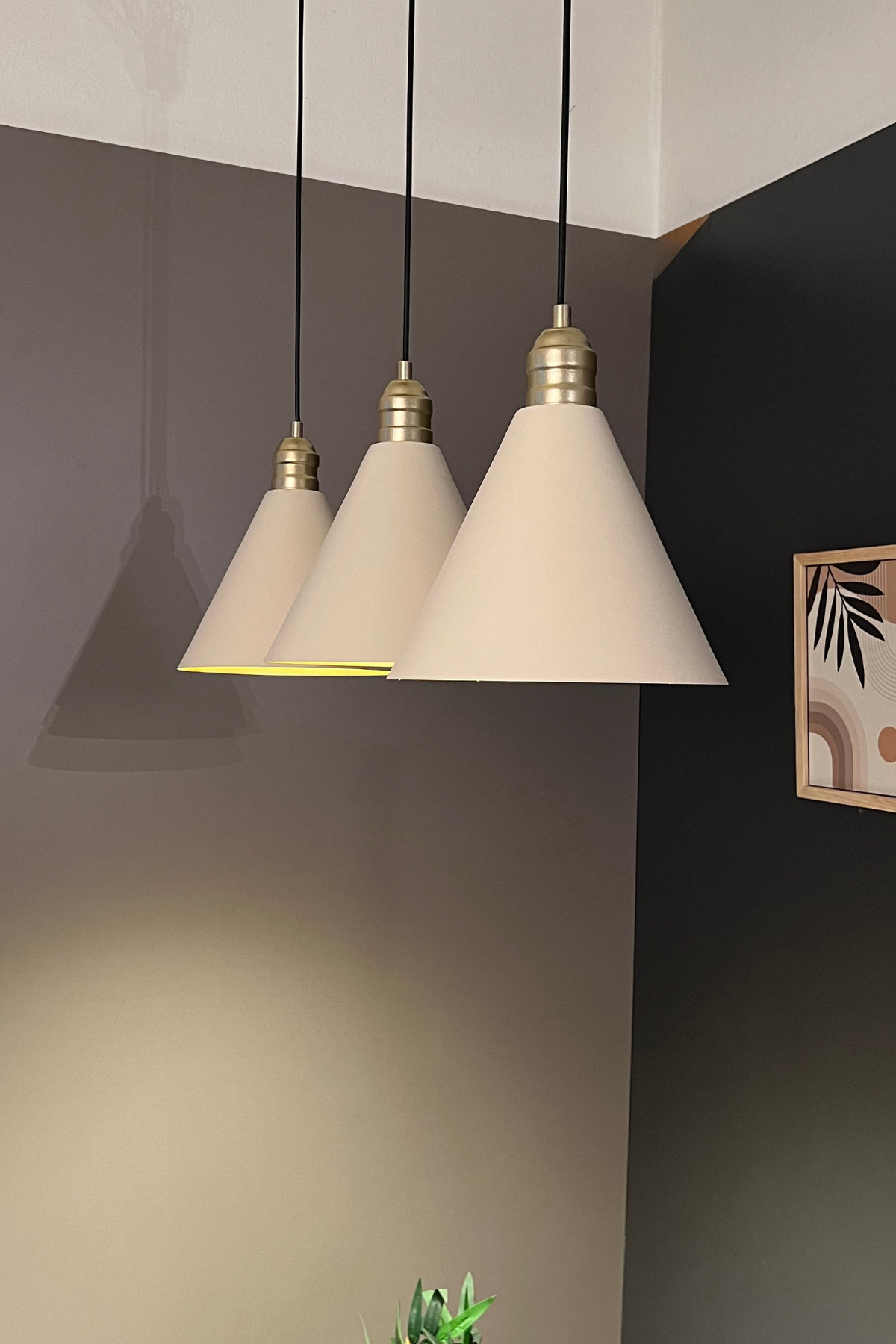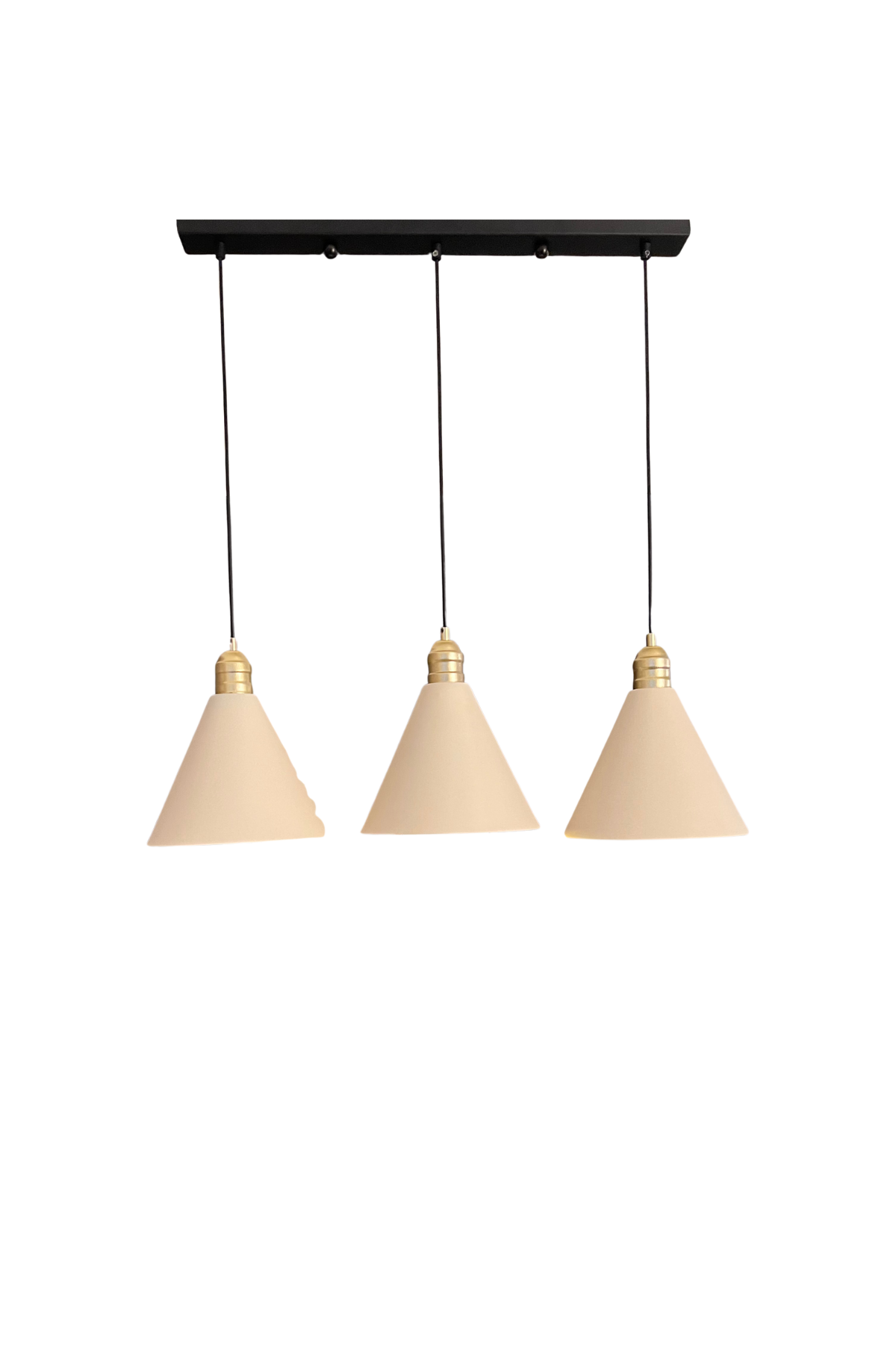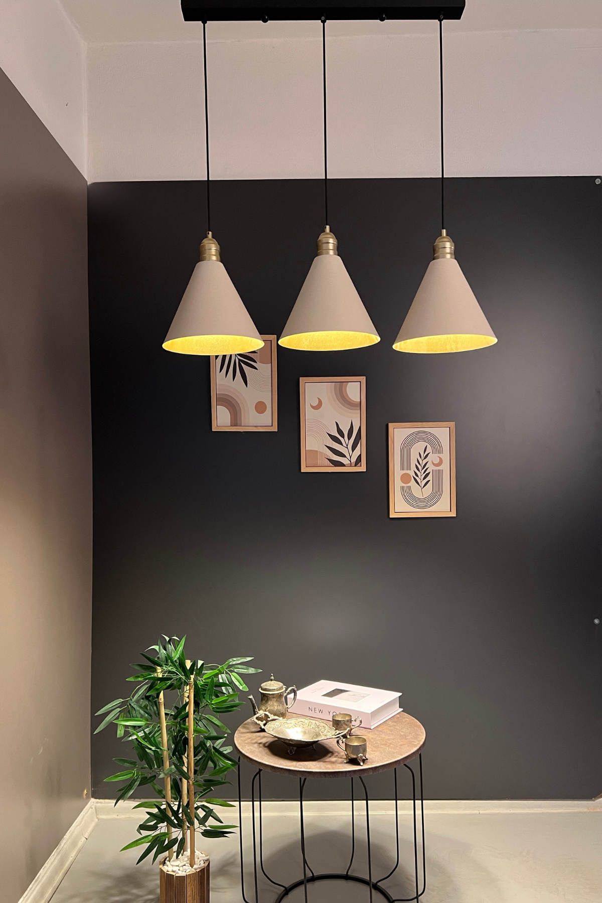 Luzarana Kuki Sıralı 3 Lü Metal Gövde Krem Renkli Avize Sarkıt Salon Mutfak Ofis Cafe Butik Lamba Aydınlatma Avizeler