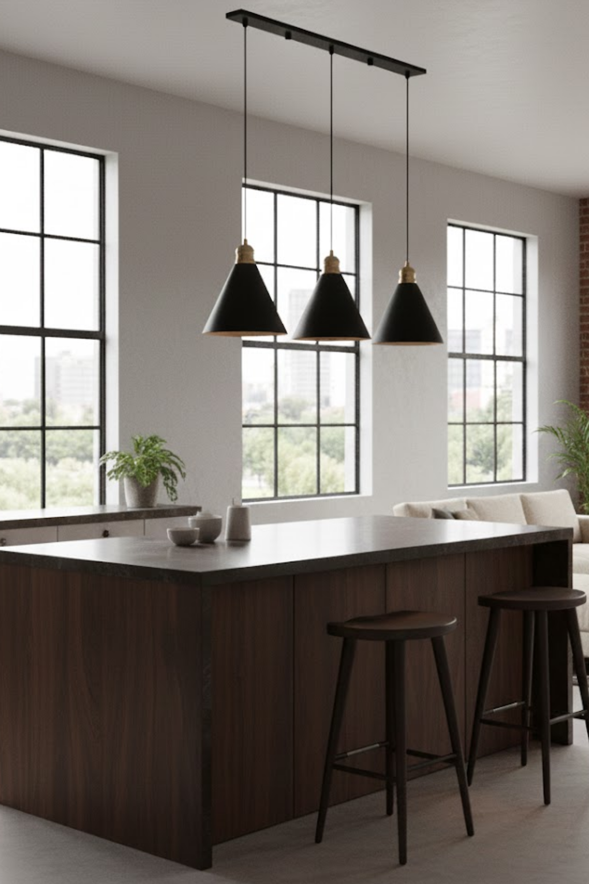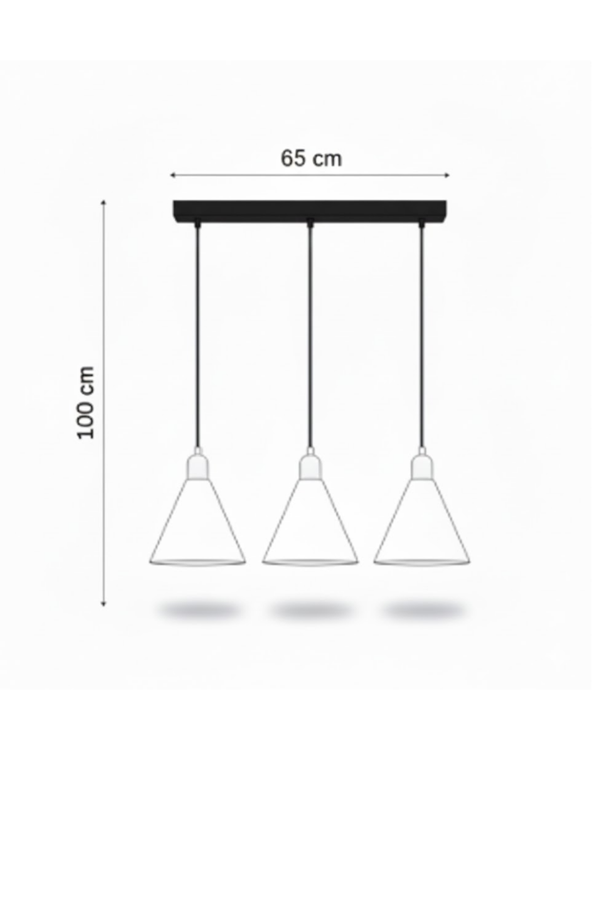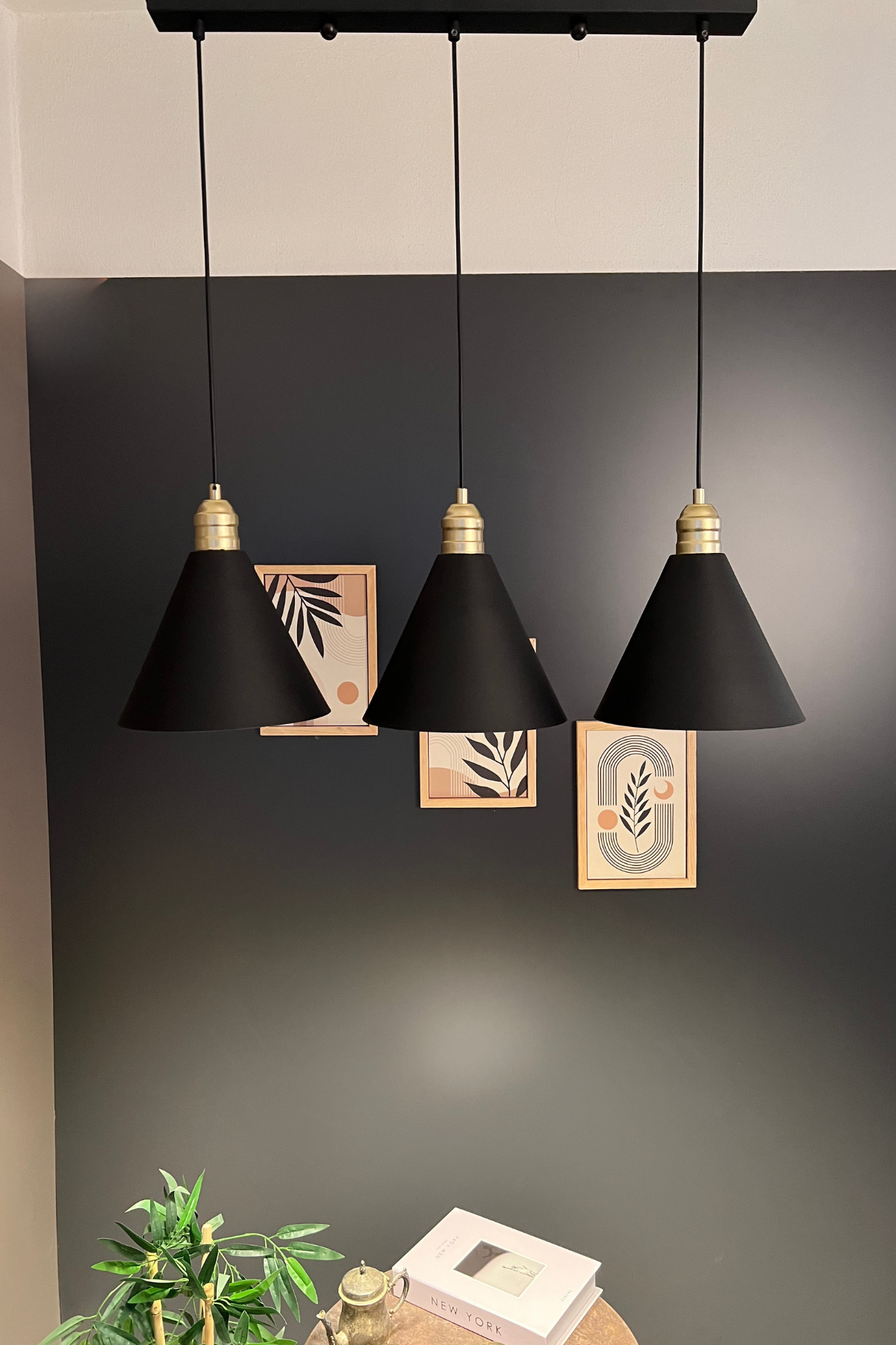 Luzarana Kuki Sıralı 3 Lü Metal Gövde Siyah Renkli Avize Sarkıt Salon Mutfak Ofis Cafe Butik Lamba Aydınlatma Avizeler