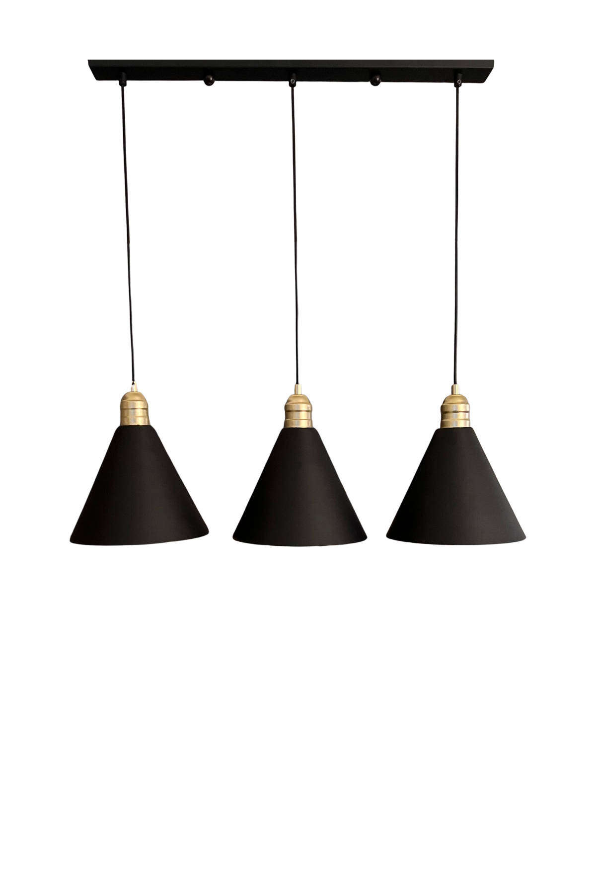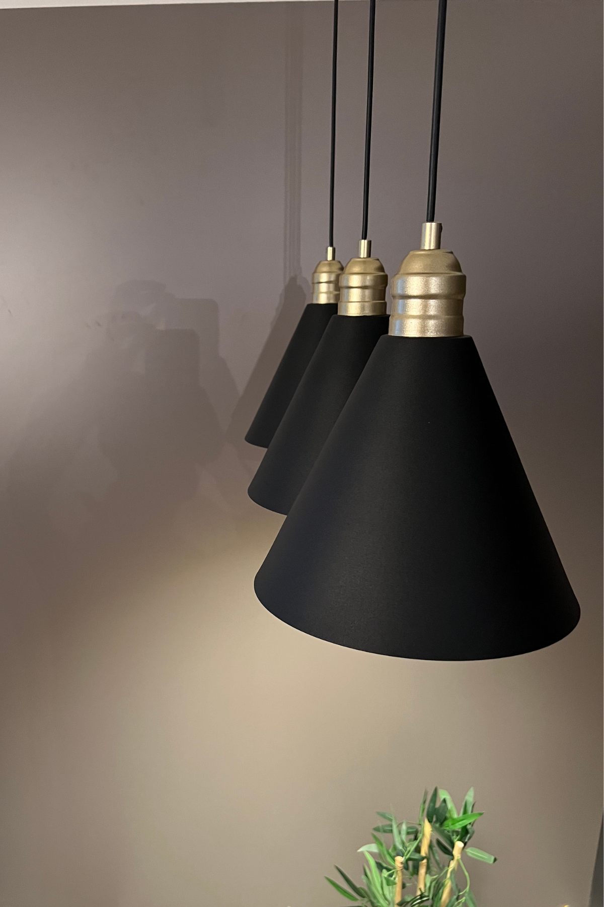 Kuki Sıralı 3 Lü Metal Gövde Siyah Renkli Avize Sarkıt Avize