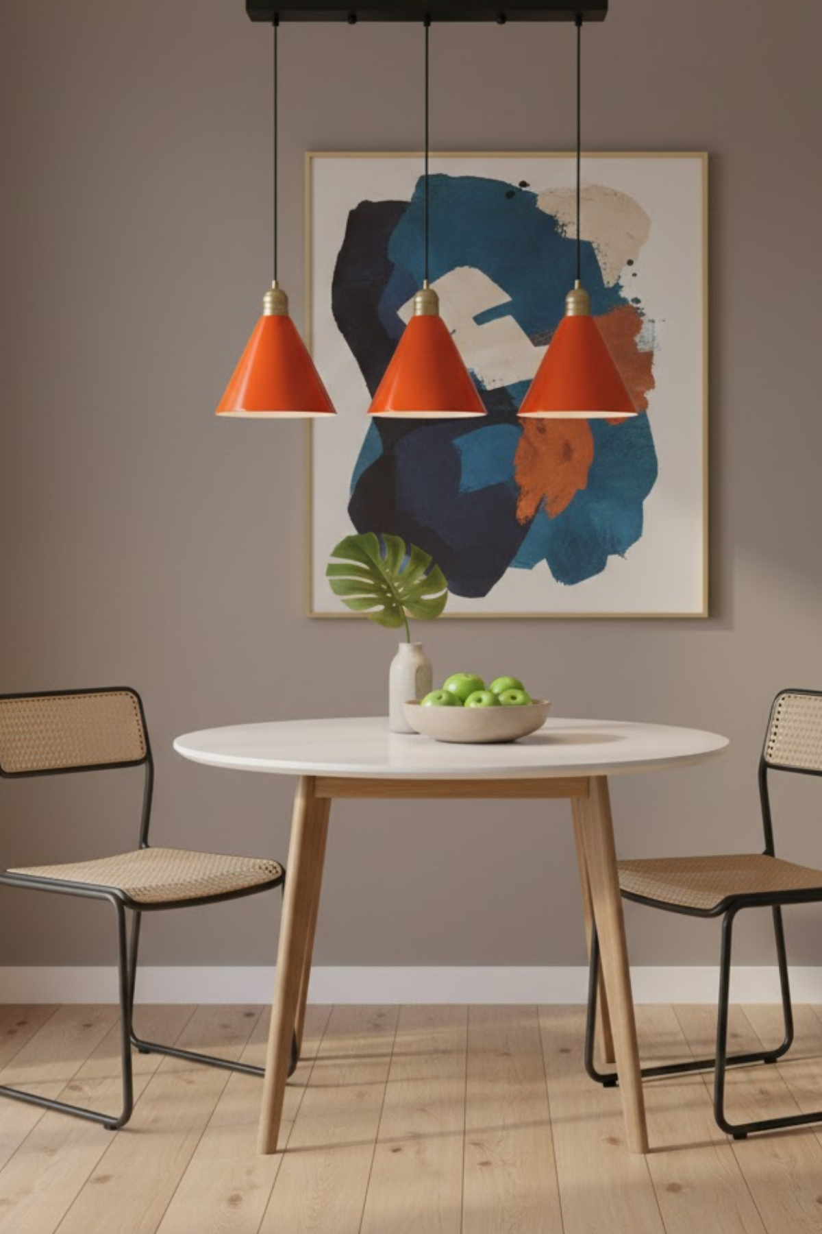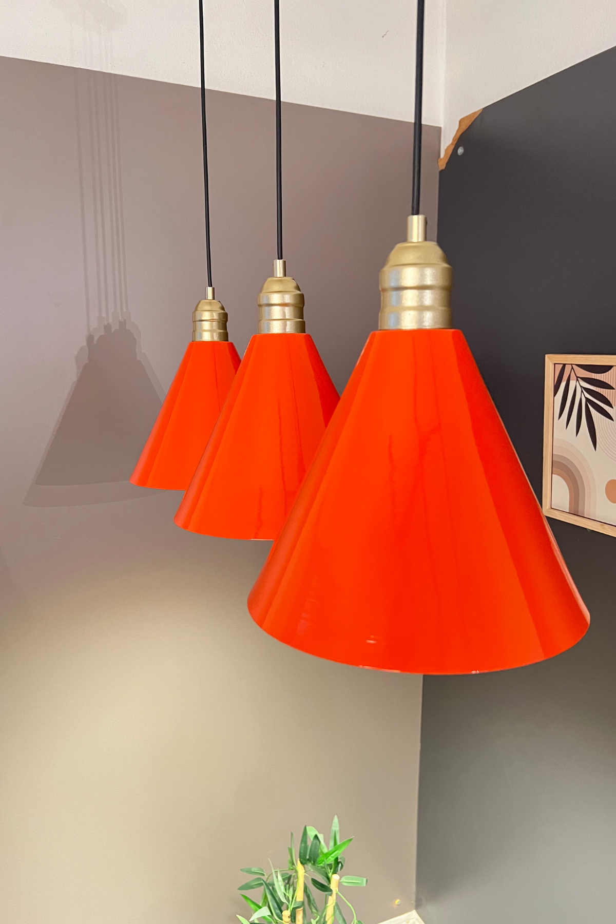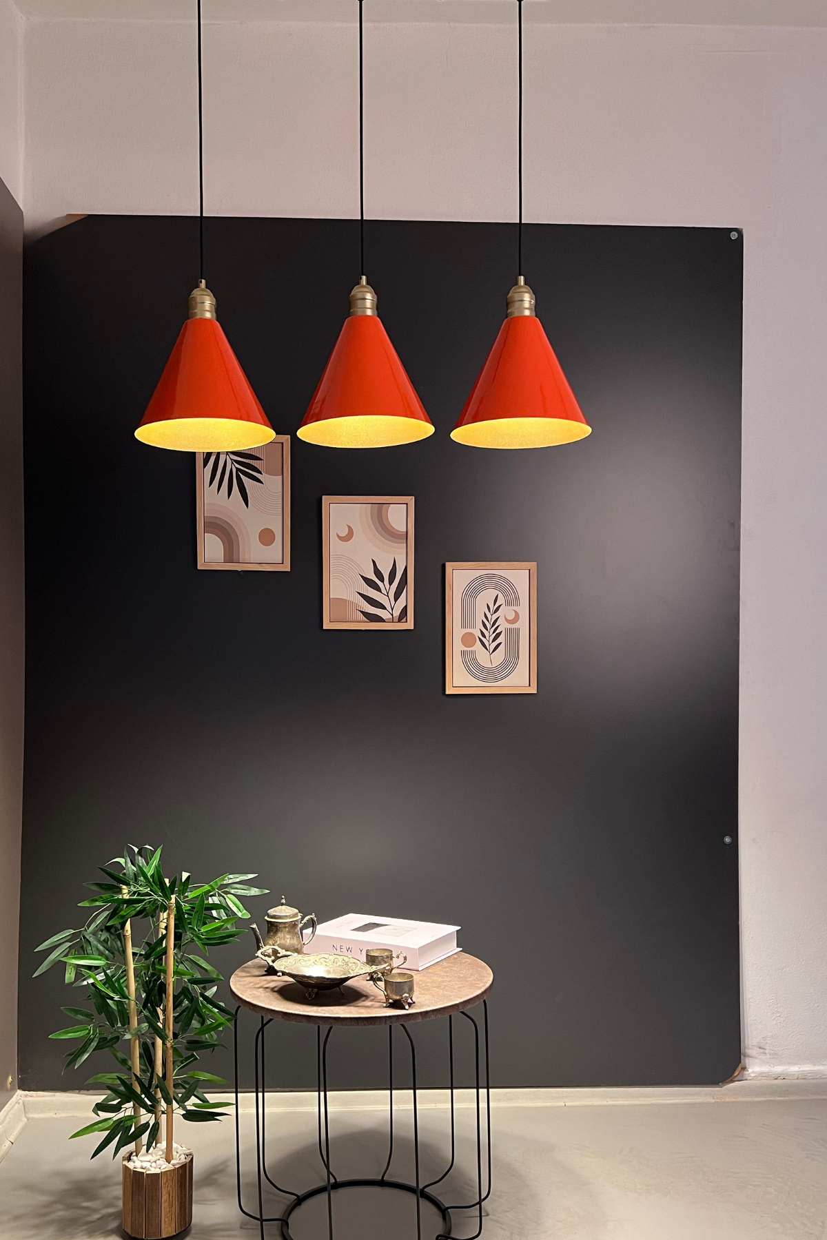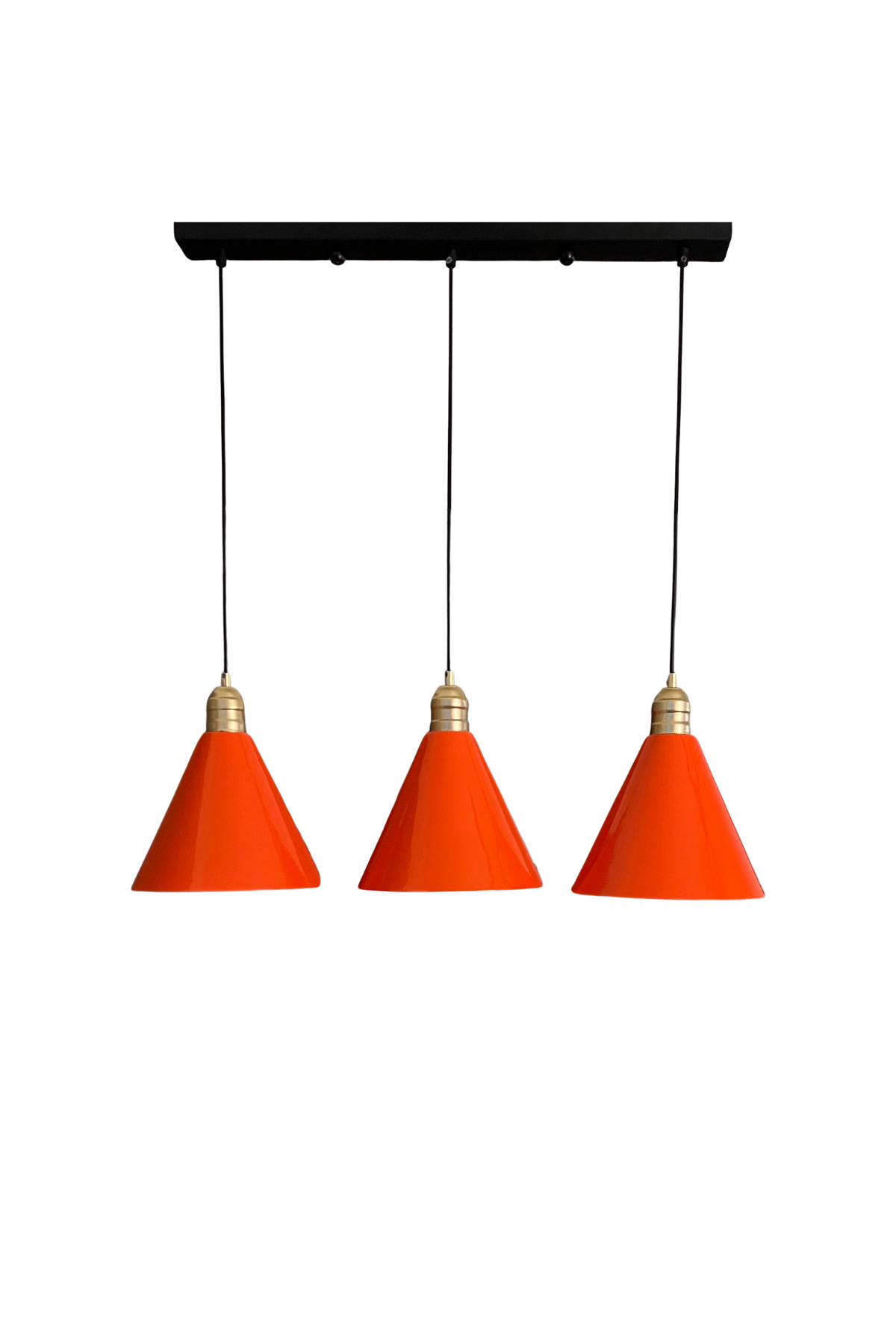 Luzarana Kuki Sıralı 3 Lü Metal Gövde Turuncu Renkli Avize Sarkıt Salon Mutfak Ofis Cafe Butik Lamba Aydınlatma Avizeler