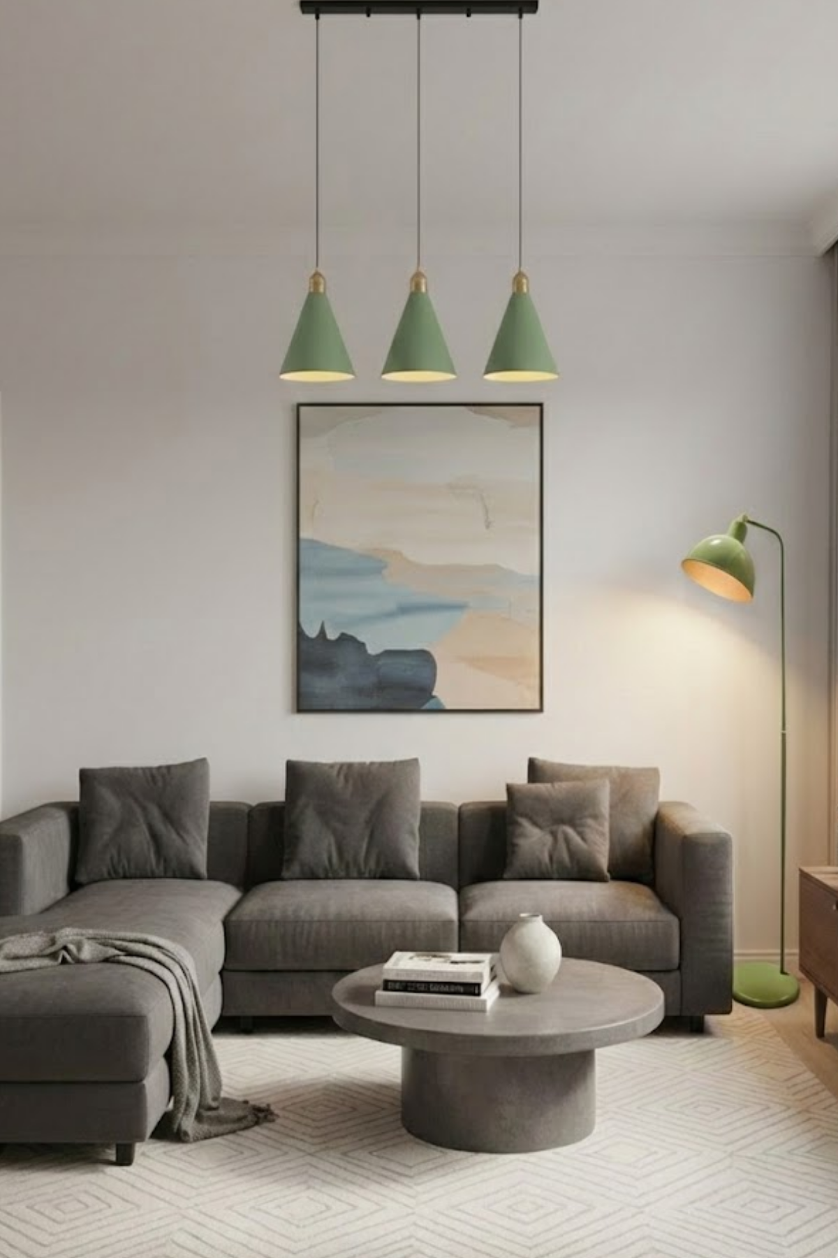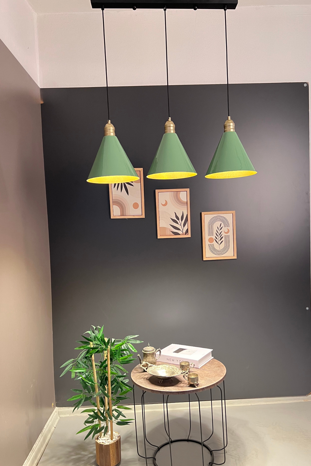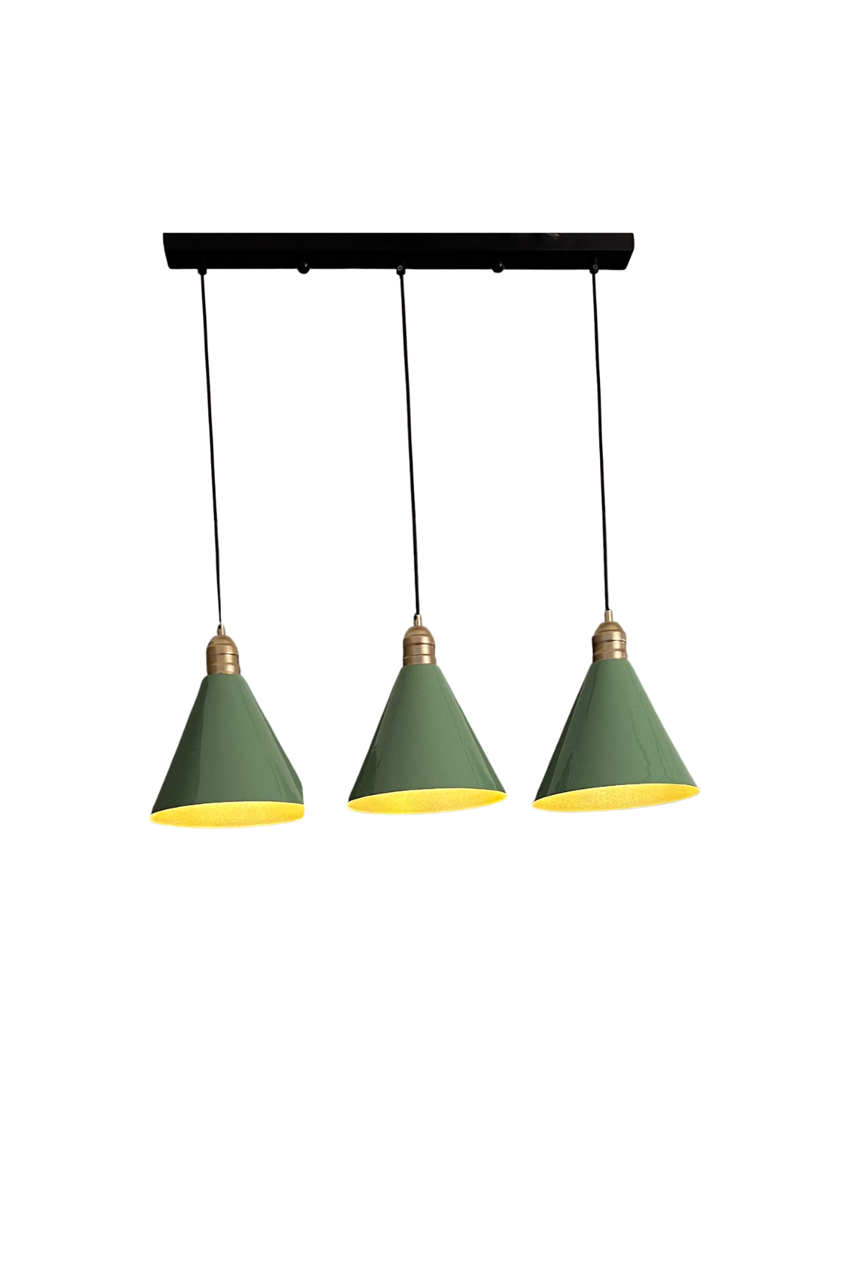 Luzarana Kuki Sıralı 3 Lü Metal Gövde Yeşil Renkli Avize Sarkıt Salon Mutfak Ofis Cafe Butik Lamba Aydınlatma Avizeler
