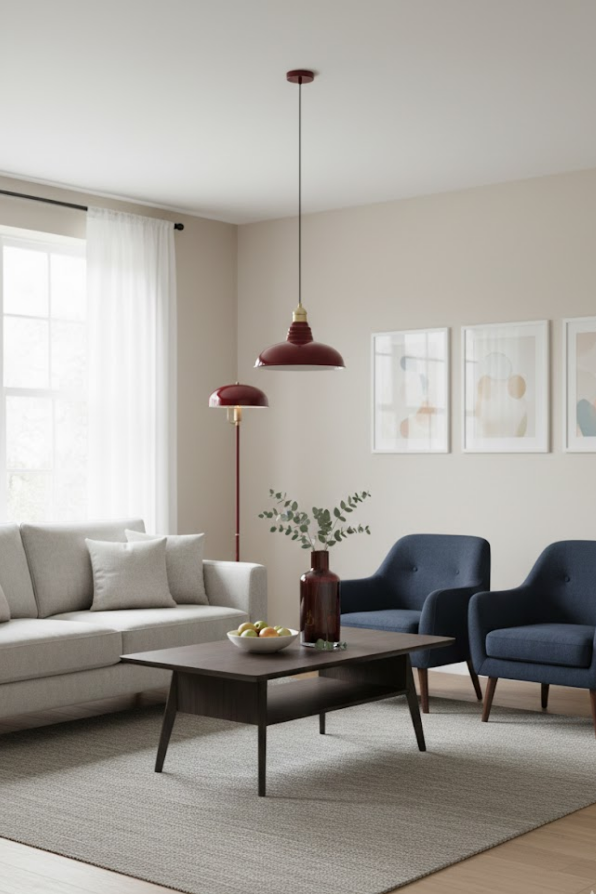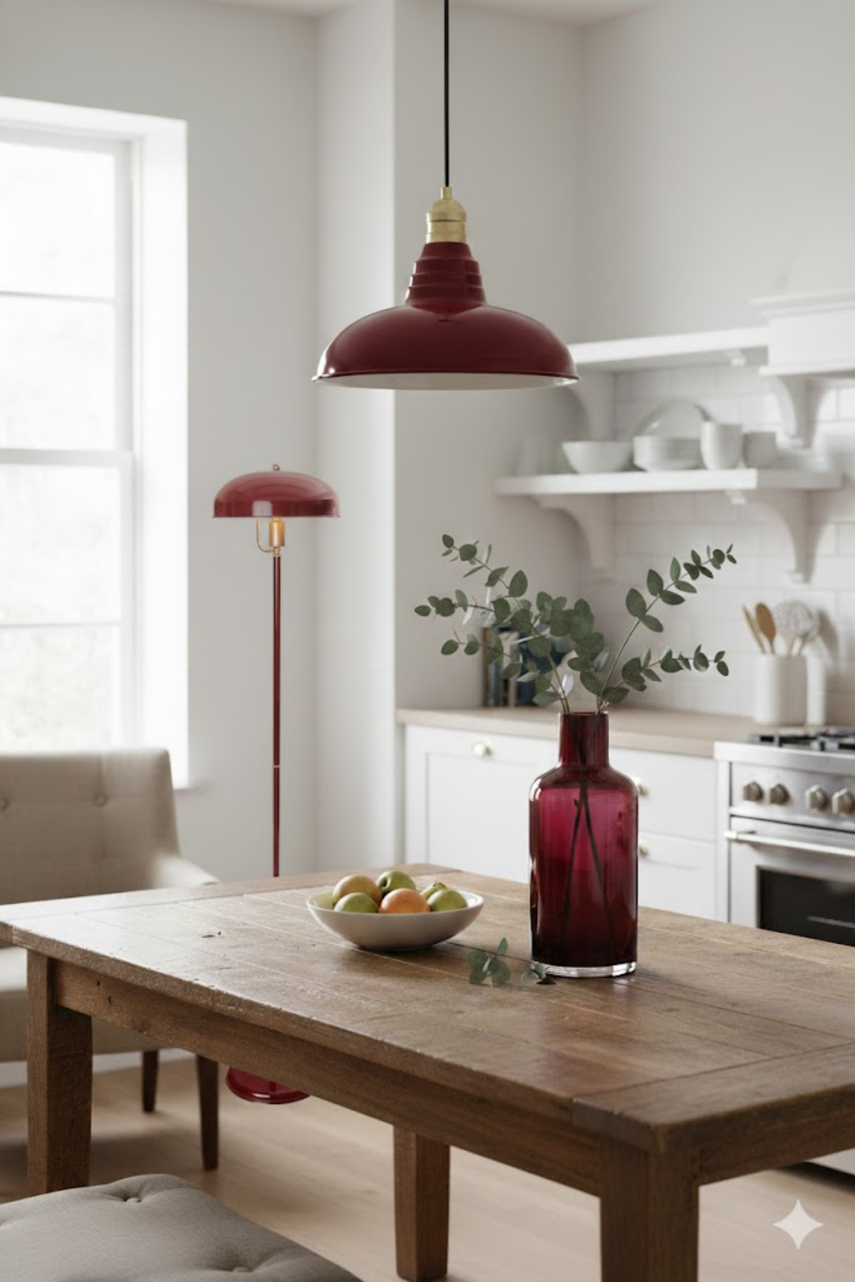 Luzarana Sidney Metal Gövde Bordo Renkli Tekli Avize Sarkıt Salon Mutfak Ofis Cafe Butik Lamba Aydınlatma Avizeler