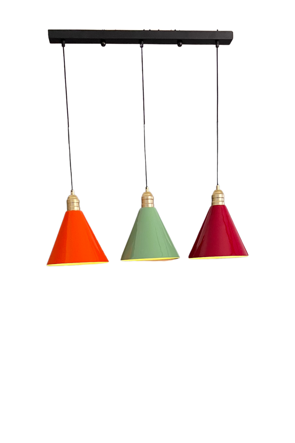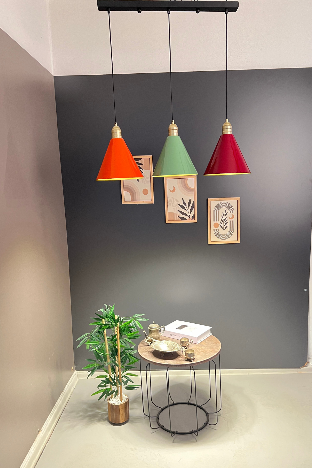 Luzarana Kuki Sıralı 3 Lü Metal Gövde Karma Renkli Avize Sarkıt Salon Mutfak Ofis Cafe Butik Lamba Aydınlatma Avizeler
