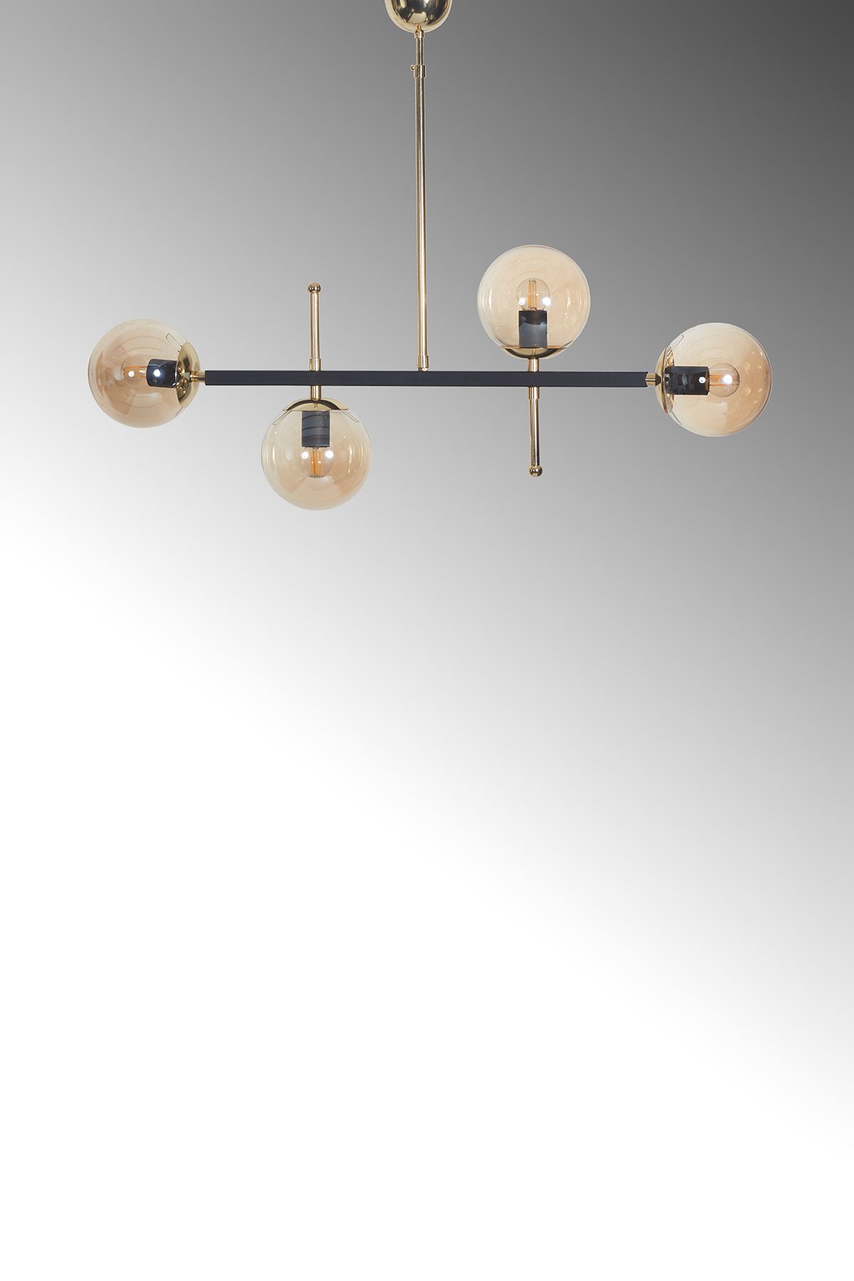 Optik 4 Lü Gold-Siyah Metal Gövde Bal Rengi Camlı Tasarım Lüx Sarkıt Avize
