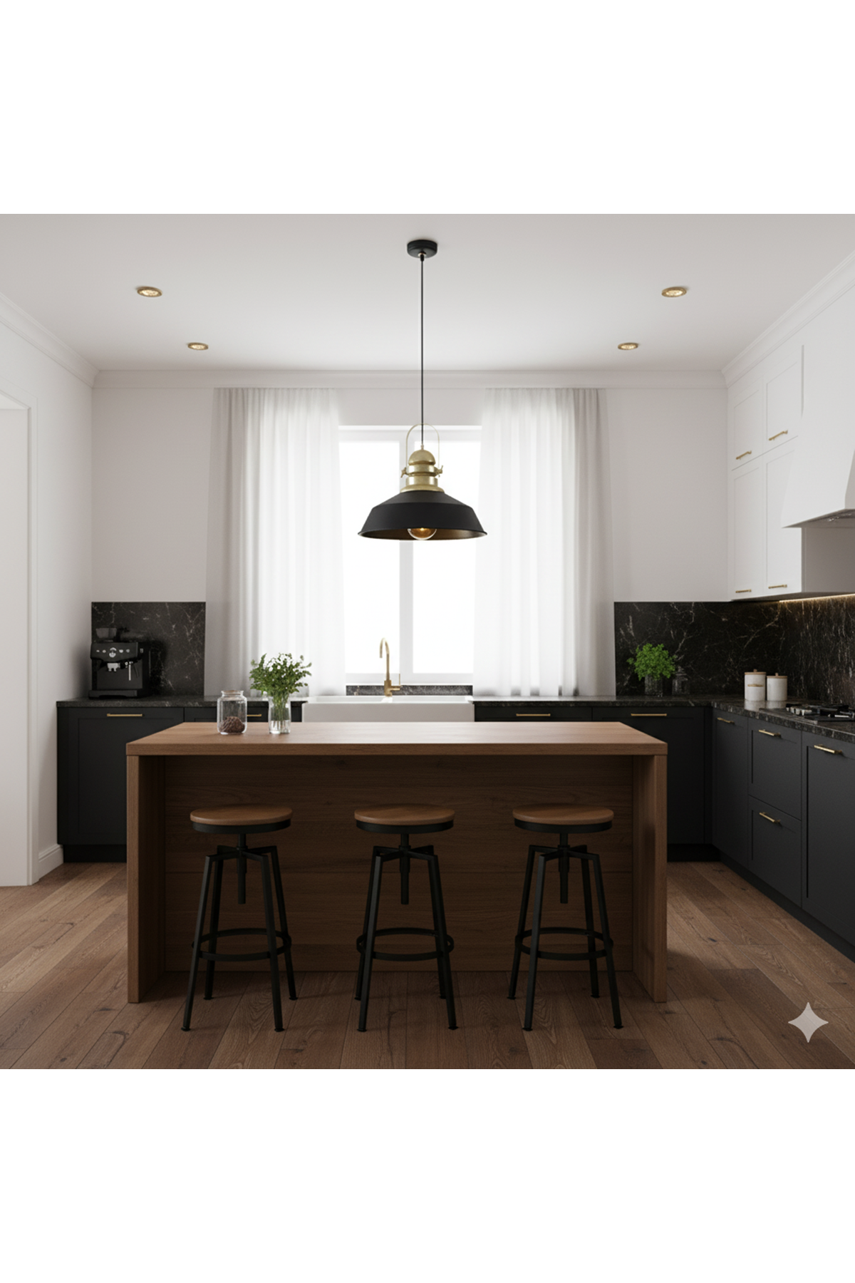 Otto Siyah Sarı Tekli Metal Sarkıt Avize