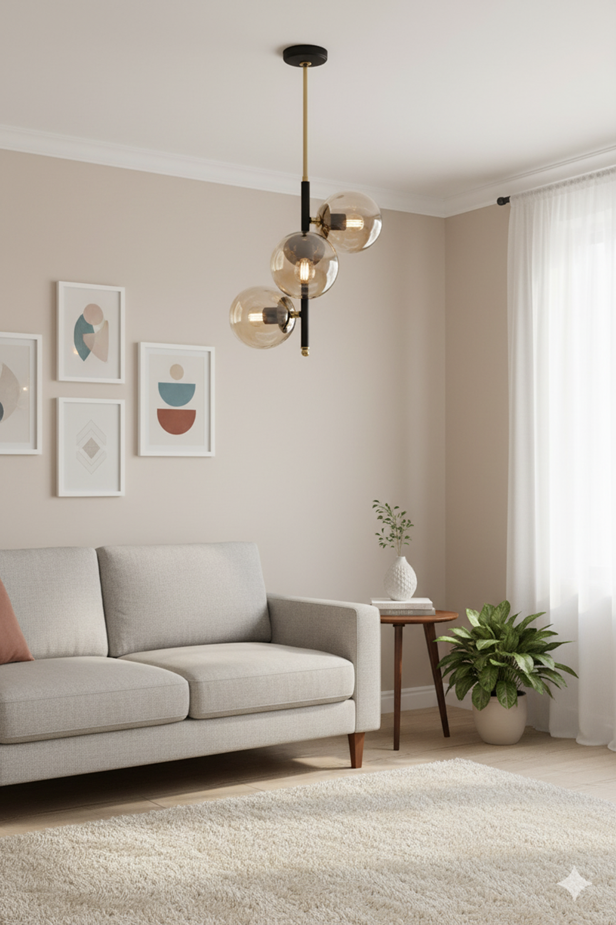 Perla 3 Lü Siyah-Gold Metal Gövde Bal Camlı Tasarım Lüx Avize