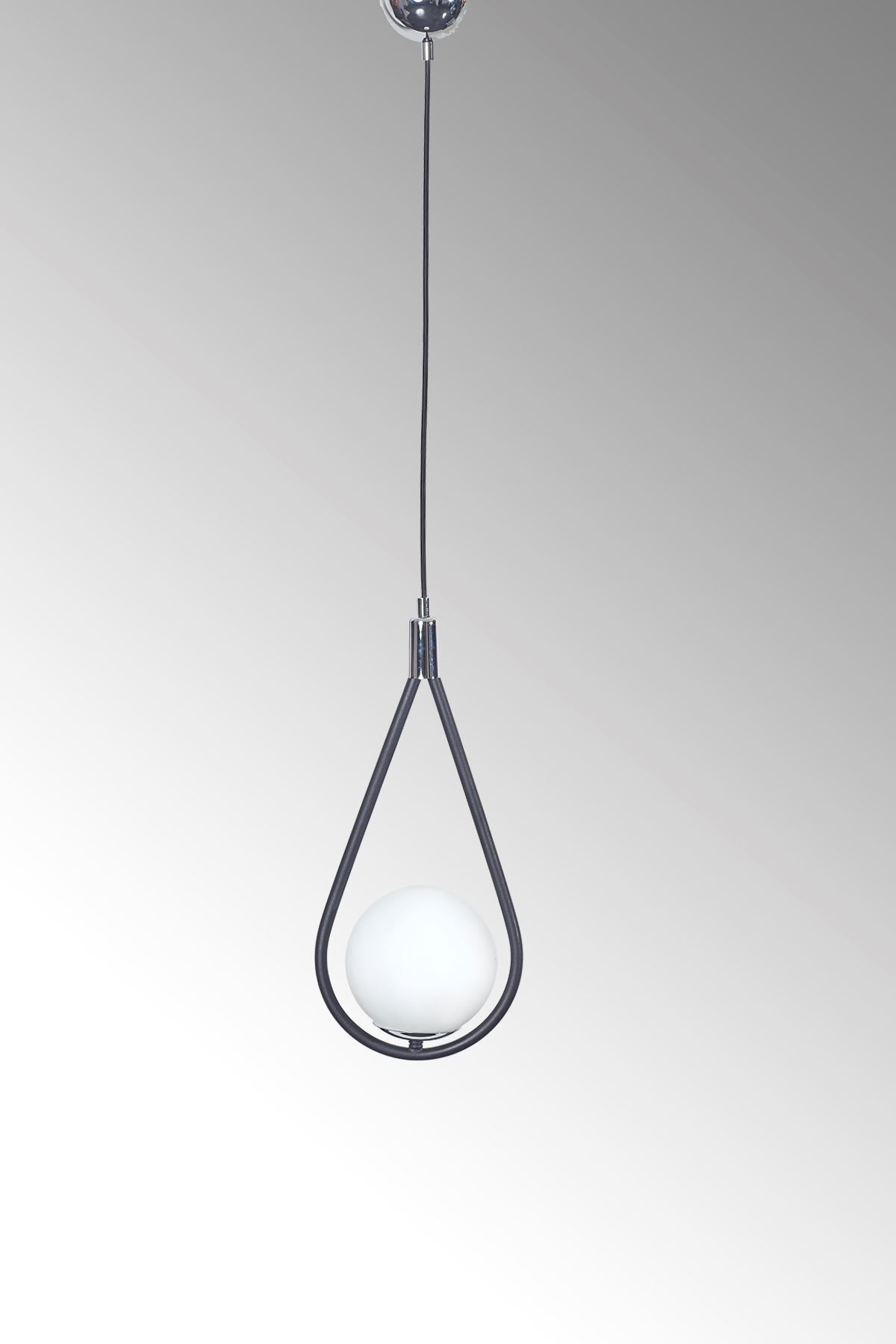 Siena Tekli Siyah-Krom Metal Gövde Beyaz Camlı Tasarım Lüx Sarkıt Avize