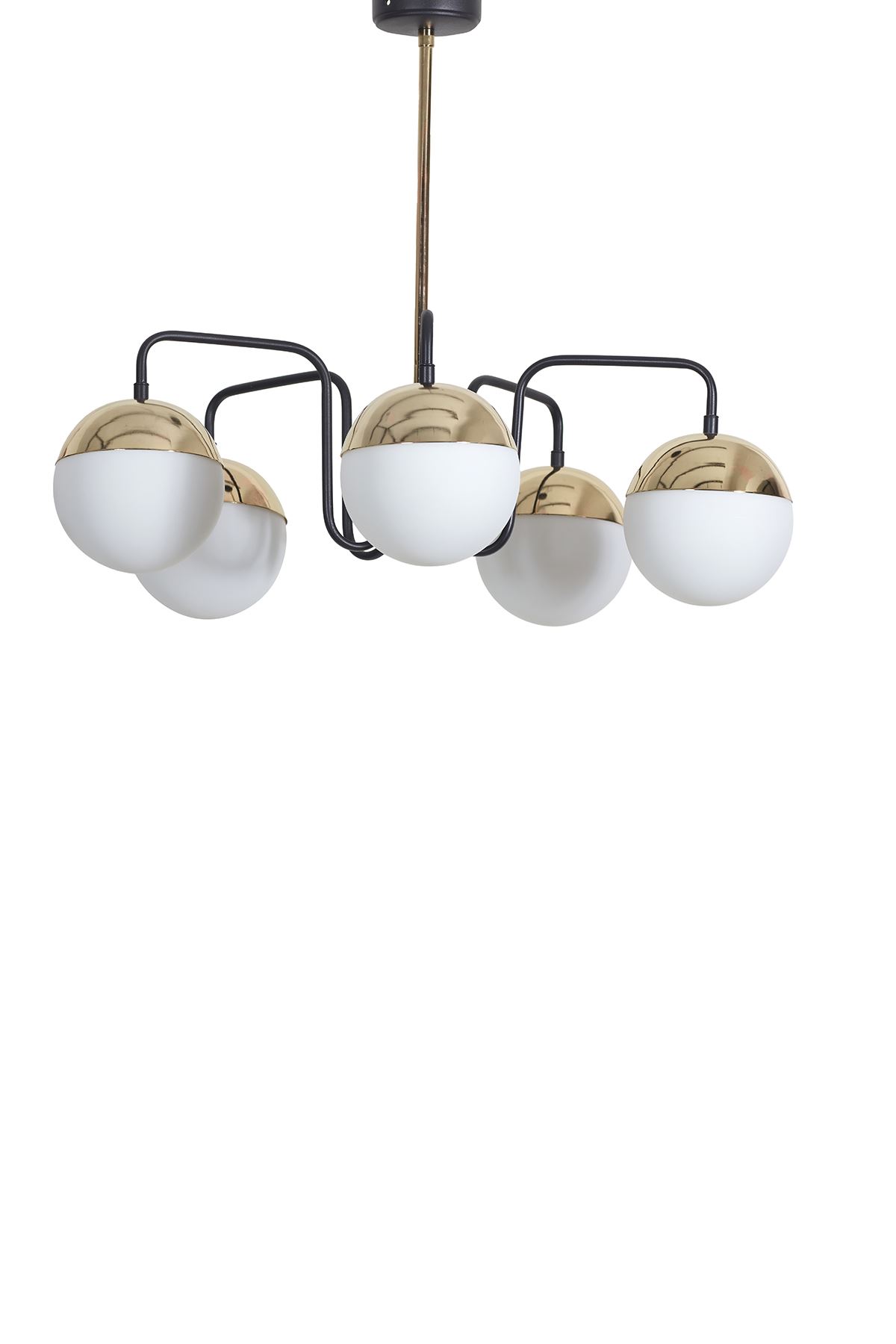 Siesta 5 Li Gold-Siyah Metal Gövde Beyaz Rengi Camlı Tasarım Lüx Avize