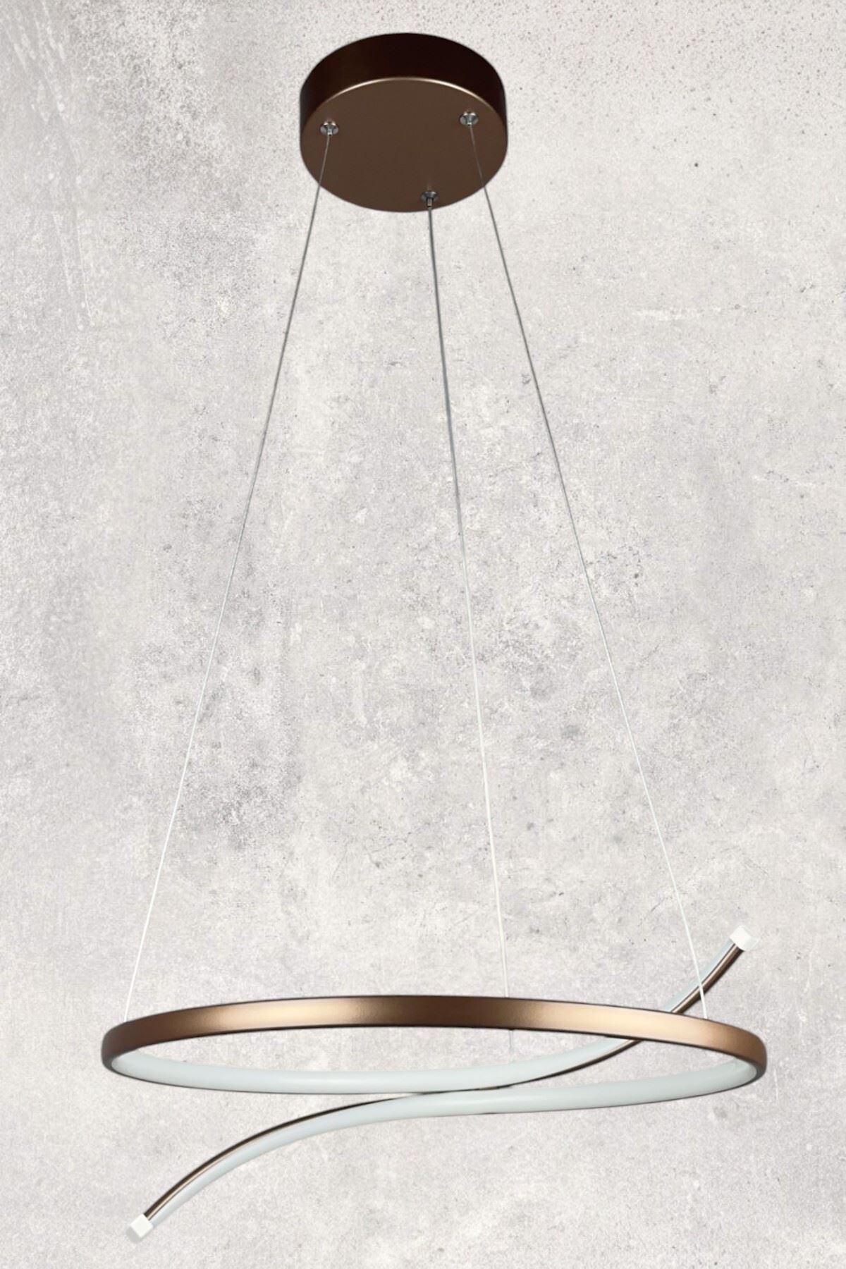 Snake Modern Tasarım Kahve Renk Beyaz Ledli Yatak Odası - Cafe - Mutfak - Salon Led Avize