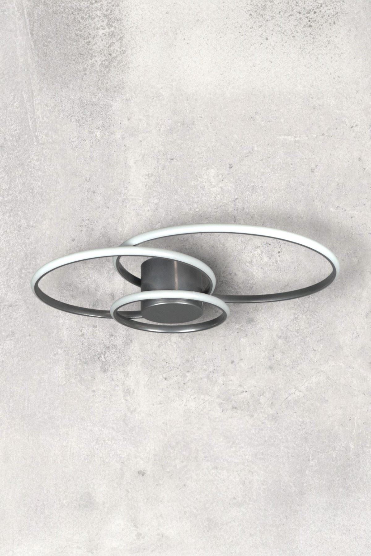 Sole Modern Tasarım Gri Renk Salon - Mutfak - Hol Beyaz Led 3 Lü Avize