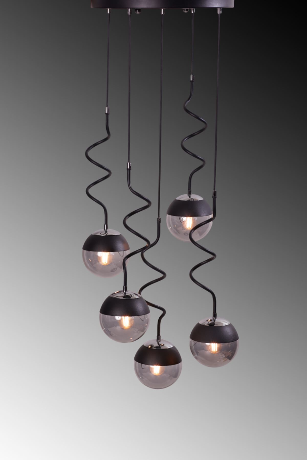 Stella 5 Li Krom-Siyah Metal Gövde Füme Camlı Tasarım Lüx Sarkıt Avize