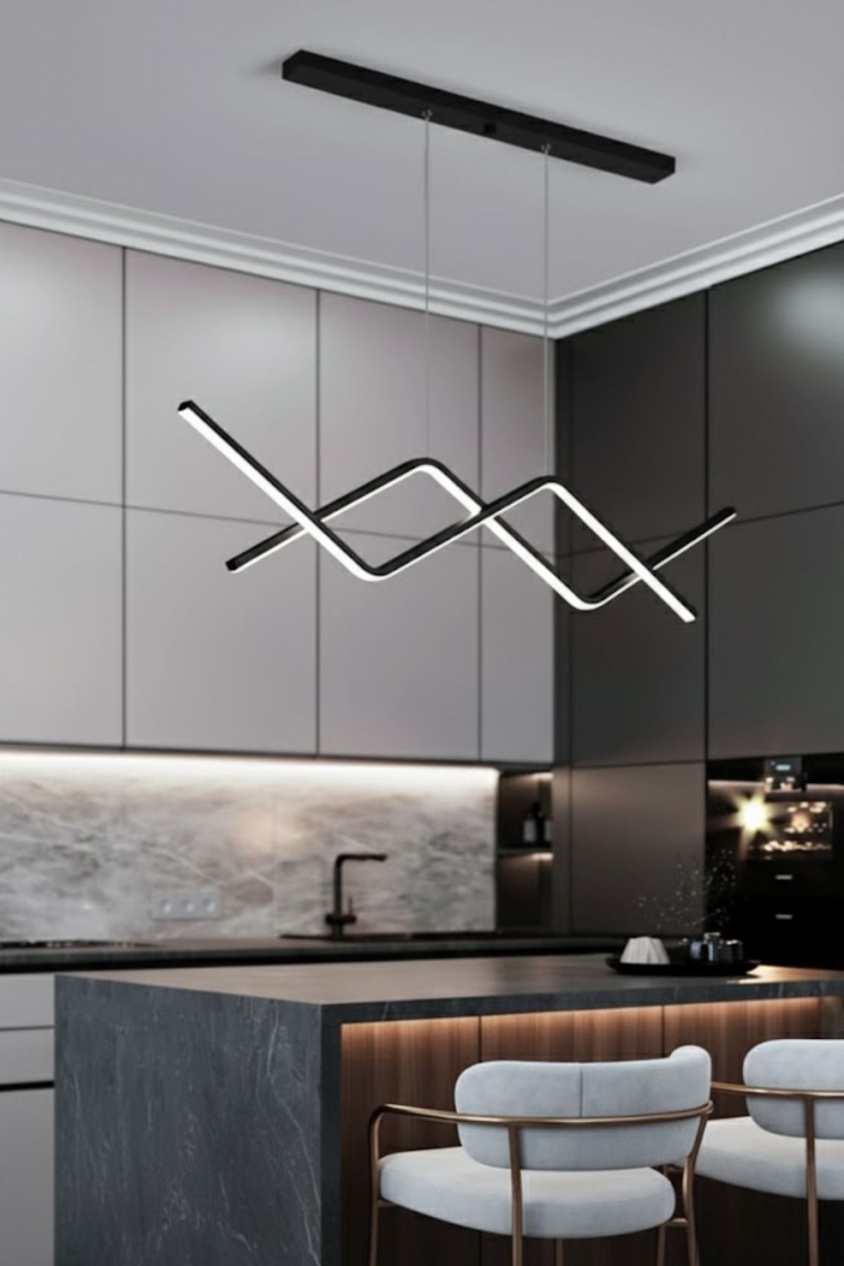 Utku Modern Tasarım Siyah Renk Yemek Masası Üstü - Mutfak - Salon Beyaz Led 2 Li Avize