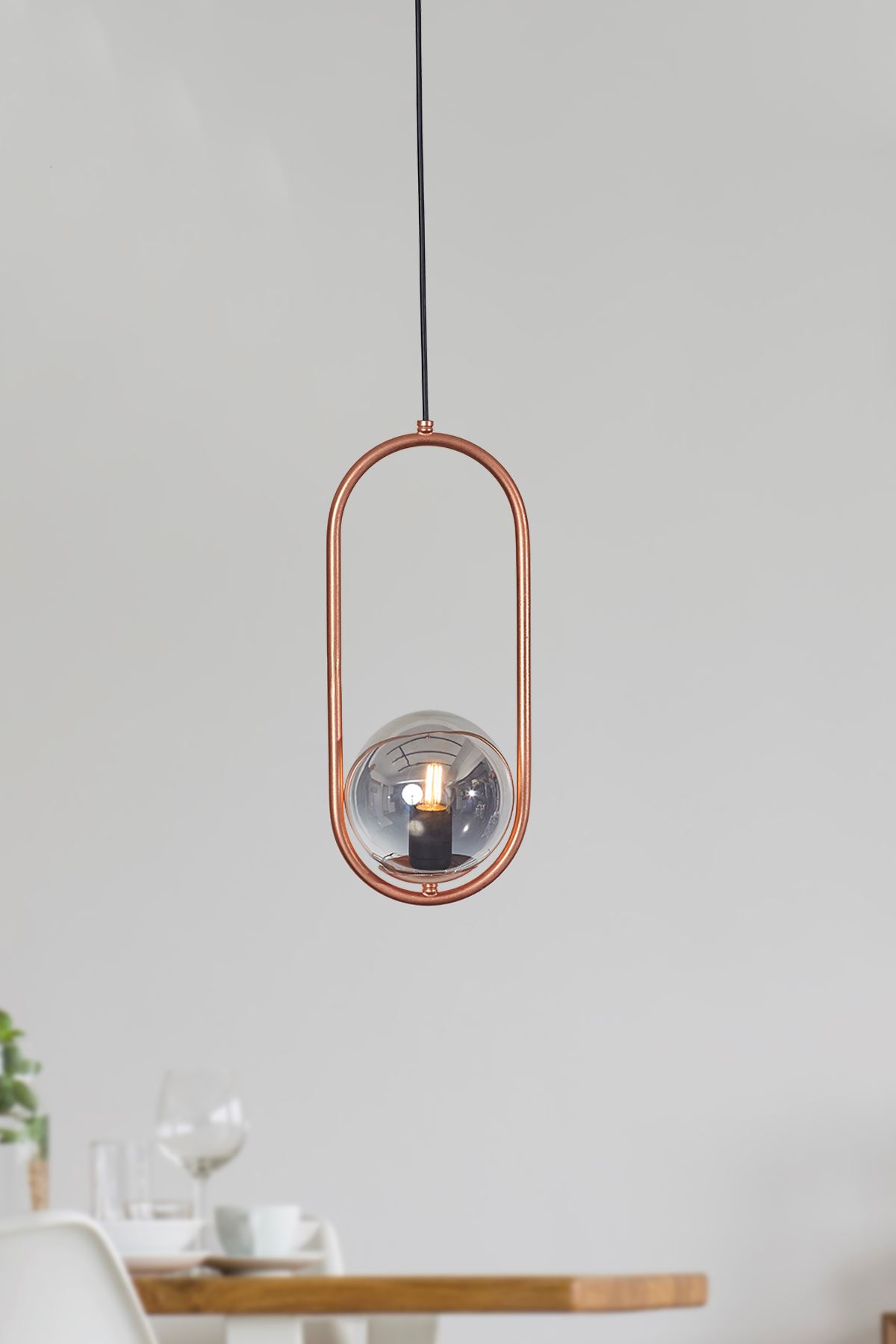 • Bakır renkli metal gövde. Füme rengi glob camları  ile çok şık ve modern bir tekli sarkıt modelimizdir. Ürünümüzün ikili sarkıt, üçlü sarkıt, masa lambası, aplik ı ve lambader  modelleride bulunmaktadır. Ev ve yaşam alanları için uygun dekoratif aydınlatma.